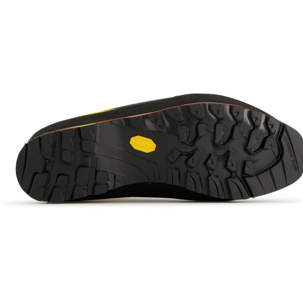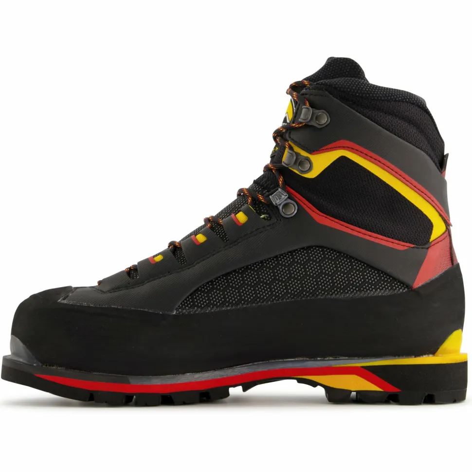 Steigeisenfester Bergstiefel für technisches Bergsteigen in Eis und Geröll ? die Trango Tower Extreme GTX bringen einen sicher zum Gipfel. Dank des soliden Schnürsystems mit Stahlhaken passen sich die Schuhe perfekt an den Fuß an und bieten dauerhaft einen sicheren Halt ohne Druckstellen zu erzeugen. Das 3D-Flex-System passt sich an die Ferse an und sorgt für ein sicheres Trittverhalten in unebenem Gelände. Die Sohle steht für Steifigkeit, Gripp und ist voll steigeisenfest. Die schützende Zehenkappe ist aus abriebfestem Material hergestellt, ebenso wie der rundum laufende Geröllschutz. An der Oberseite des Schafts schließen elastische Gamaschen den Schuh nach außen ab, damit kein Schnee von oben in die Trango Tower Extreme GTX eindringen kann.