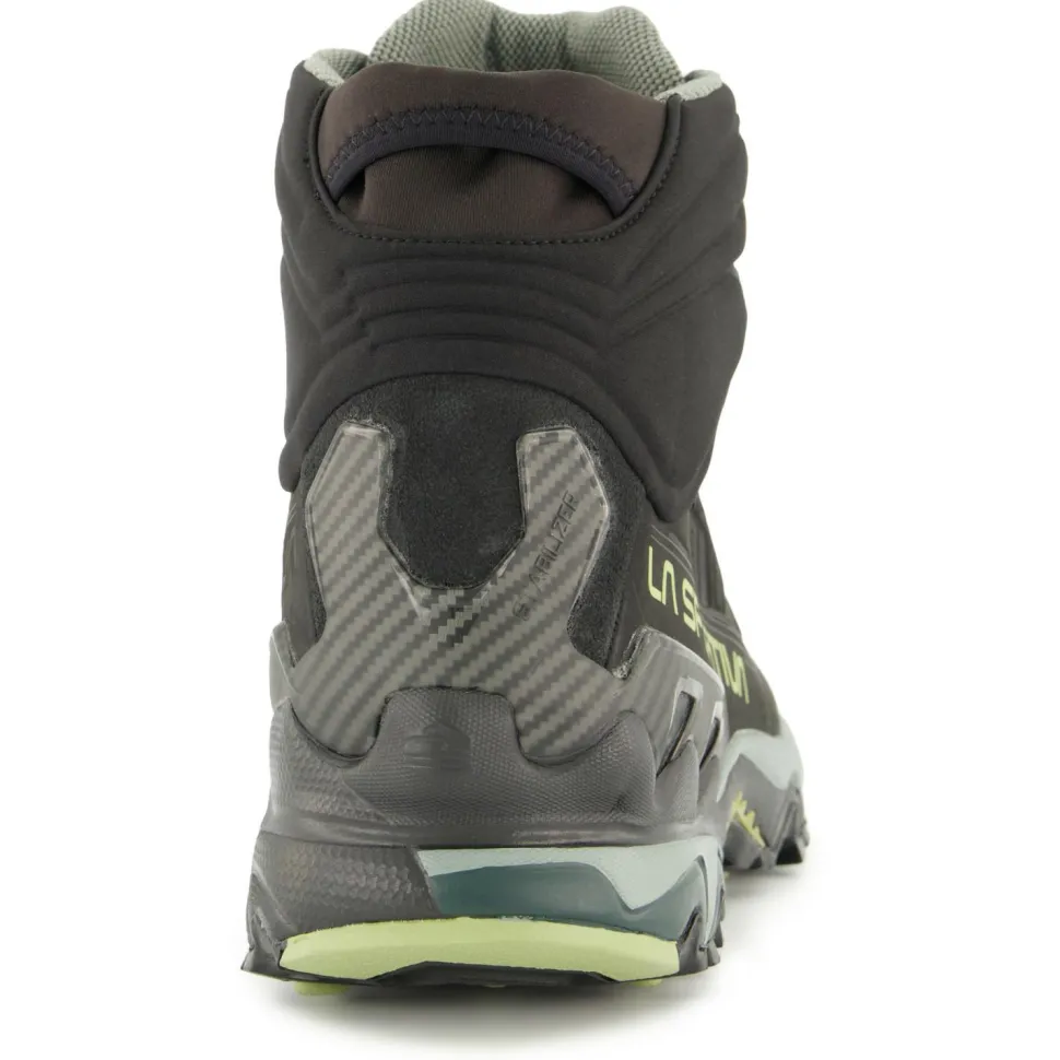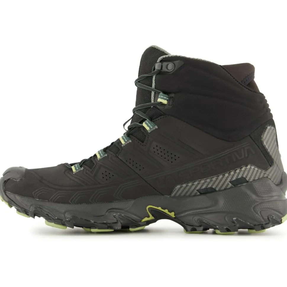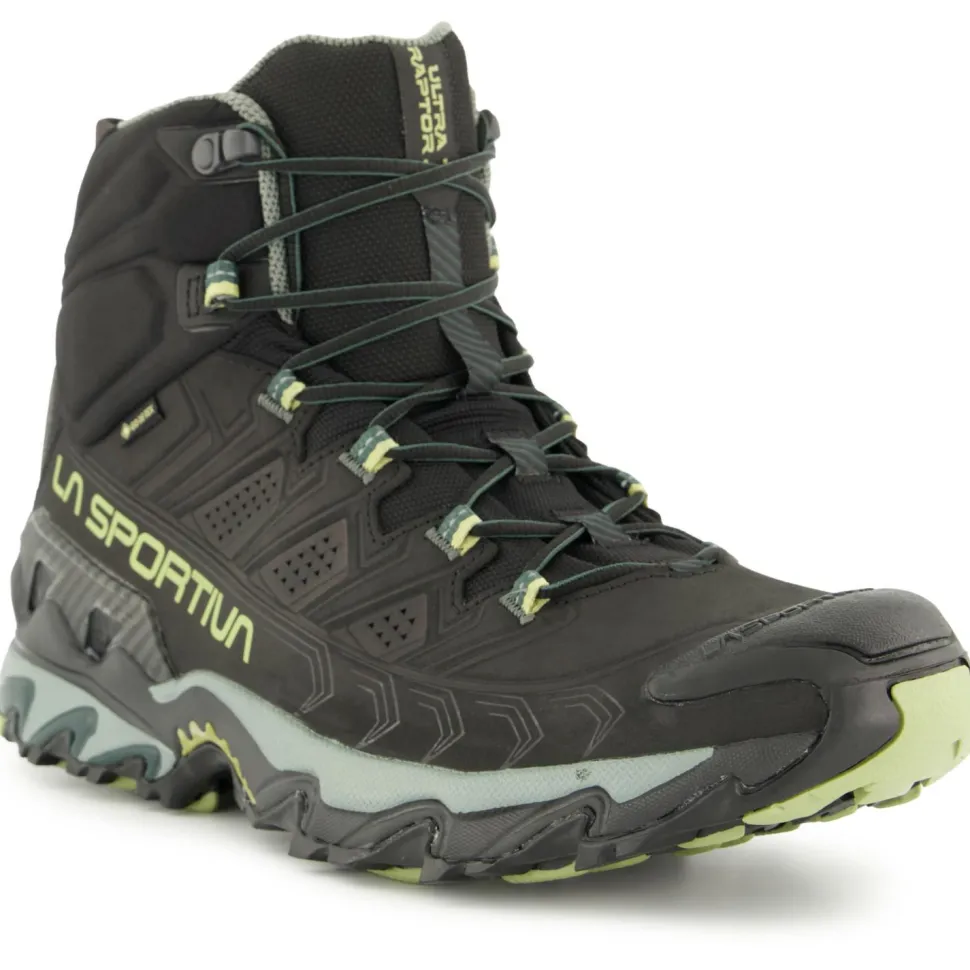 Der Ultra Raptor II Mid Leather GTX von La Sportiva ist der perfekte Schuh für den Speed-Hiking-Einsatz oder spontane Tagestrips in die Berge mit leichtem Gepäck. Seine Gore–Tex Extended Comfort Membran macht ihn atmungsaktiv und wasserdicht. Der sogenannte „comfort collar“, eine weiche, knöchelumschließende Manschette dichtet den Schuh gegen Schmutz und Steine ab und gibt dem Knöchel angenehmen Halt. Die easy-fit-Spoiler sorgen dafür, den Midcut-Schuh zügig und einfach an- und auszuziehen.