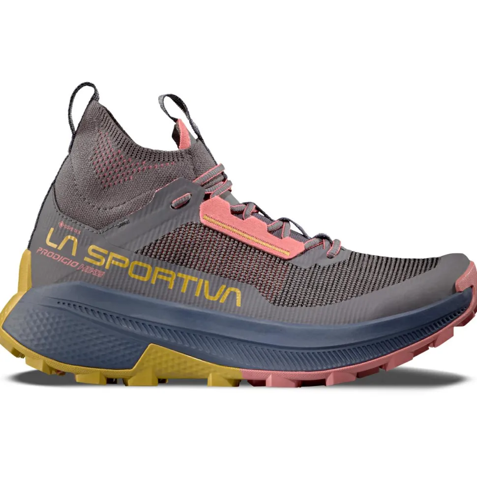 Du bist in den Bergen gerne schnell unterwegs und suchst Schuhe, die sowohl für Wanderungen, als auch zum Laufen eine perfekte Wahl sind? Dann bist Du bei den Women’s Prodigio Hike GTX Multisportschuhen von La Sportiva genau richtig. Bei dem bequemen Aufbau der Schuhe steht der Komfort beim Gehen und Laufen im Vordergrund. Das geringe Gewicht und der ausgeklügelte Schnitt der Schuhe macht sie zu absoluten Komfortgaranten, wenn die Gipfel rufen. Das extrem strapazierfähige Mesh-Obermaterial sorgt auch auf Traversen und anspruchsvollen Anstiegen für optimale Polsterung und Atmungsaktivität. Kommt Regen dazu, kannst Du Dich dank der GORE-TEX-Membran trockenen Fußes ganz auf den Weg konzentrieren – egal, wie die Bedingungen sind.