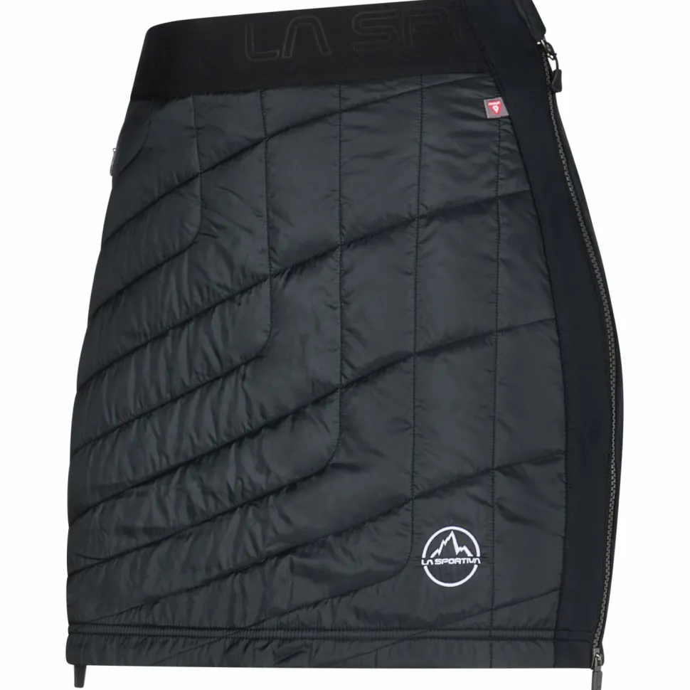 Wer auch in den Bergen nicht auf ein feminines Outfit verzichten möchte, sollte sich den Women’s Warm Up Primaloft Skirt von La Sportiva mal genauer ansehen.Er sorgt dank seiner PrimaLoft Isolierung für eine Extraportion Wärme an kalten Tagen und ist durch seitliche Reißverschlüsse schnell an- oder ausgezogen. Stretcheinsätze lassen der sportlichen Dame viel Bewegungsfreiheit und der komfortable Bund sitzt sicher und bequem. Der Rock hat eine versteckte Reißverschlusstasche für wichtigen Kleinkram.Die verwendeten Materialien sind zu einem großen Teil recycelt und dank Bluesign-Zertifikat ist eine nachhaltige und umweltschonende Herstellung garantiert.Der Women’s Warm Up Primaloft Skirt sorgt für allzeit warme Popos.