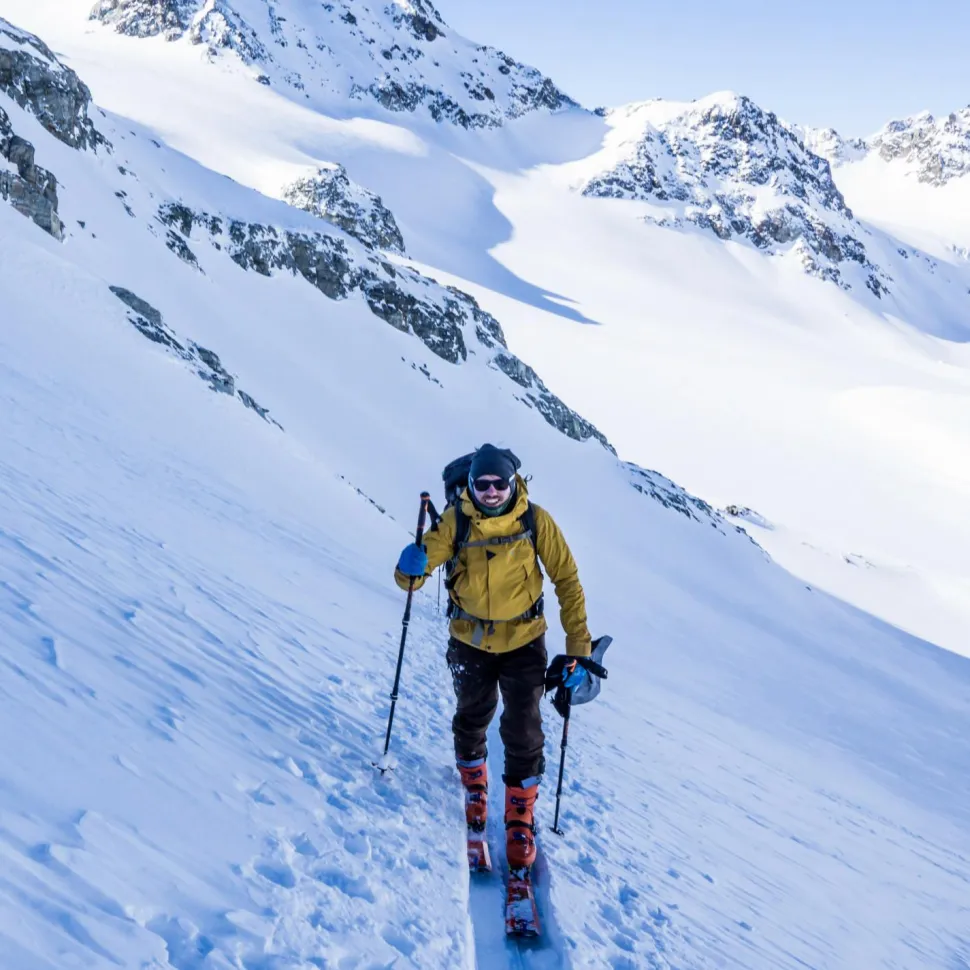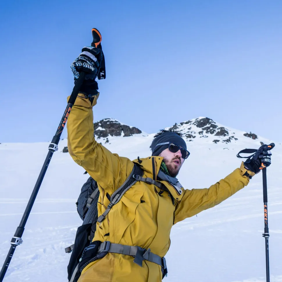 Die Leki Civetta Pro fühlen sich in steilen Hängen mit viel Powder genauso zu Hause wie auf leichten Skitouren mit entspannten Abfahrten!