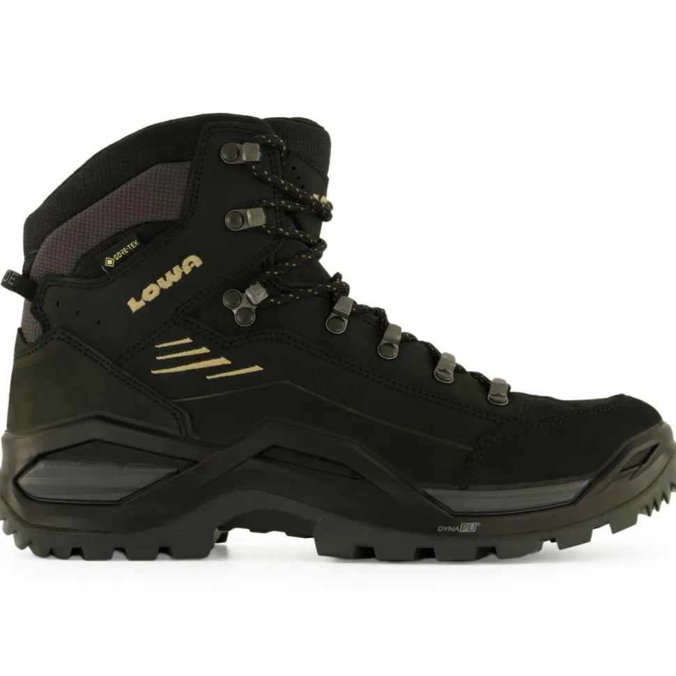 Durch die Zwei-Zonen-Schnürung kannst Du die Renegade Evo GTX Mid perfekt an Deine Füße anpassen, was das Tragegefühl natürlich nochmals verbessert, und Dir sorgenfreies, angenehmes Wandern ermöglicht. Die herstellereigene, langlebige DYNAPU-Zwischensohle bietet perfekte Dämpfung, die speziell in forderndem Gelände und auf langen Touren den Tragekomfort sicherstellen. Dank der bewährten GORE-TEX-Membran sind die Schuhe sowohl wasser- als auch winddicht, bleiben dabei aber stets atmungsaktiv. Und schließlich sorgt eine Vibram Rene Trac-Außensohle für den nötigen Grip im Gelände.
