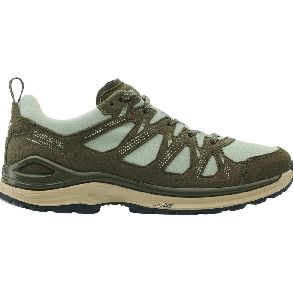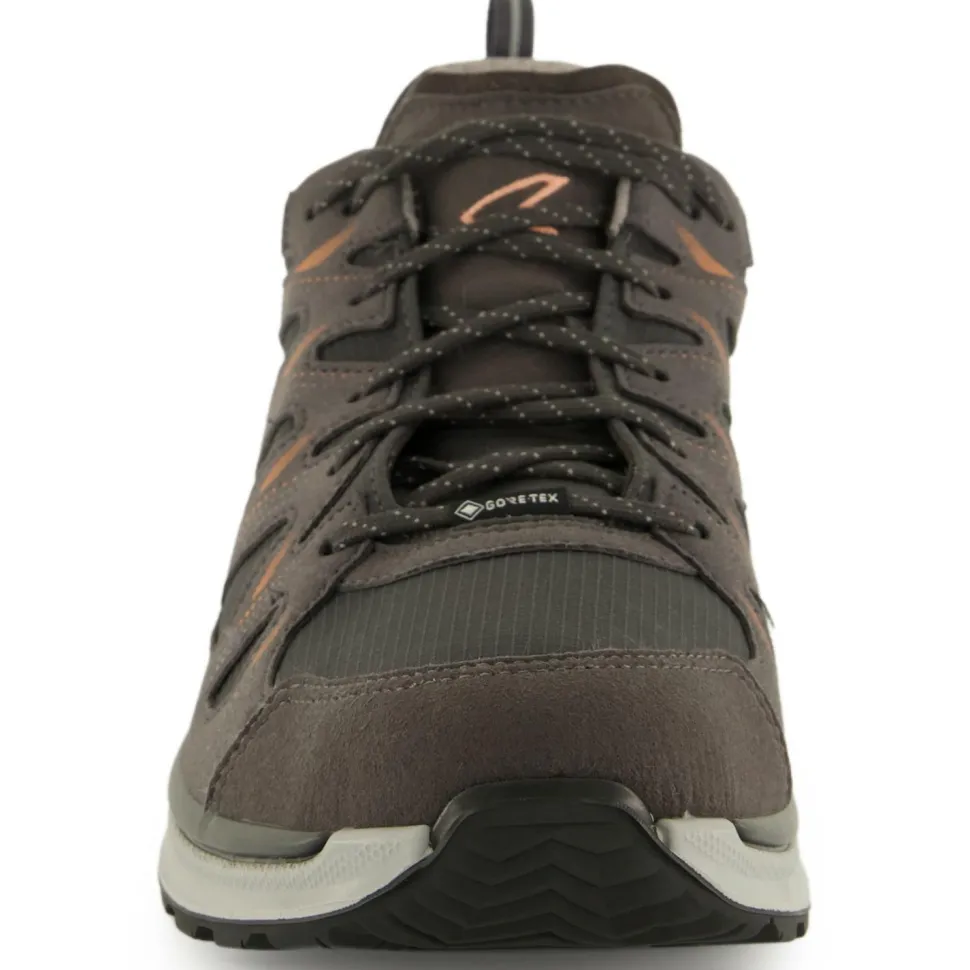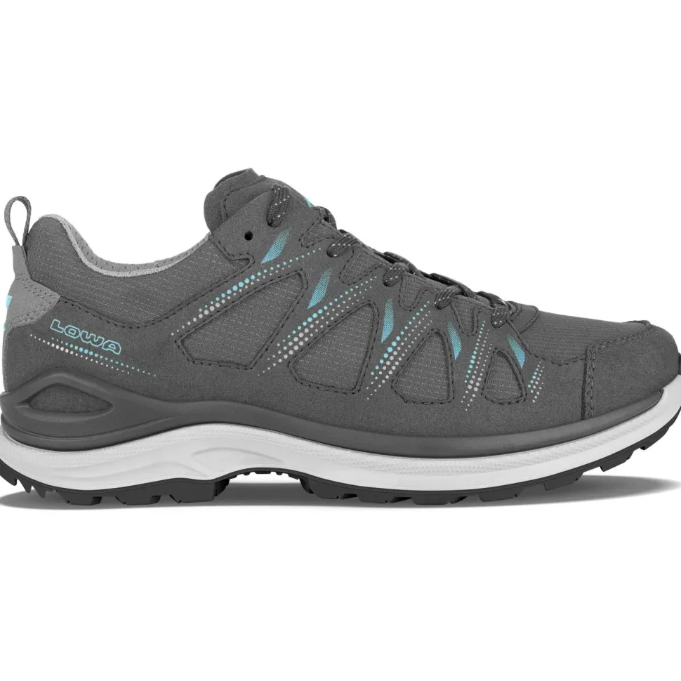 Die bayerischen Wander- und Bergschuh-Spezialisten von Lowa haben auch 1a Multisportschuhe im Programm -das beste Beispiel dafür sind die Women’s Innox Evo II GTX! Durch die bewährte GORE-TEX-Membran ist das Obermaterial sowohl wasser- als auch winddicht, bleibt dabei aber stets atmungsaktiv, so dass Du nicht fürchten musst, zu überhitzen. Und der die Sohle umspannende, den Fuß bequem einfassende und stützende Support Frame sorgt für besten Halt und Stabilität in unebenem Gelände. Die flexible Außensohle weist eine geringe Biegesteifigkeit auf, unterstützt so das natürliche Abrollverhalten des Fußes beim Gehen, und sorgt außerdem für eine gute Rückmeldung über die Beschaffenheit des Untergrundes.