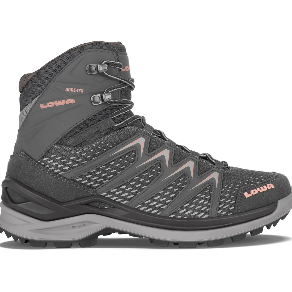 Mit den Wanderschuhe Women’s Innox Pro GTX Mid von Lowa bist Du immer gut unterwegs! Sie sind dank GORE-TEX Membran wasserdicht und atmungsaktiv. Der hohe Schaft gibt Stabilität und einen erhöhten Nässeschutz. Mit der Lowa Multi Trac Laufsohle und ihren multidirektionalen Stollen hast Du einen sicheren Grip in alpinem Gelände. Die Verstärkungen an Fersen und Zehen erhöhen den Geröllschutz. Ein unterstützender Sohlenrahmen gibt nochmal Stabilität in unebenem Terrain. Ideal für Wandertouren!