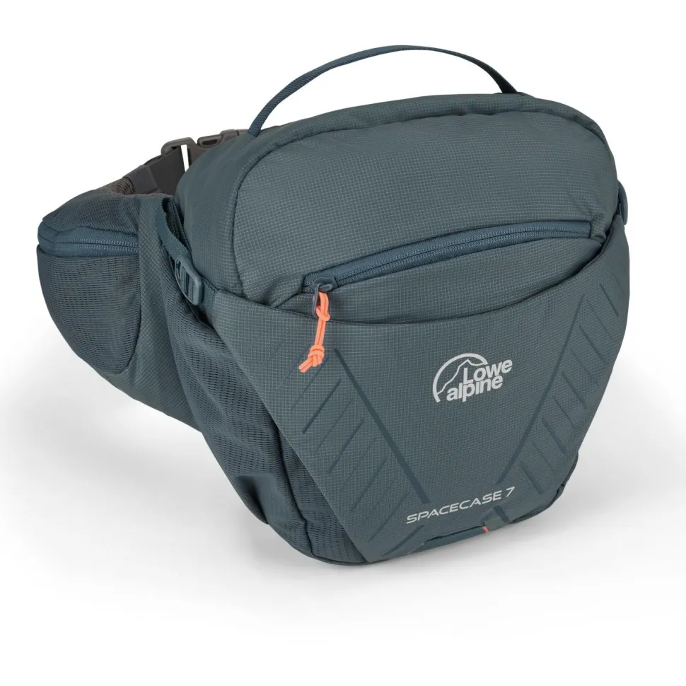 Die Space Case 7 Hüfttasche von Lowe Alpine eignet sich perfekt zum Radfahren und Wandern. Mit ihrem Air Contour Pad ist sie dabei angenehm belüftet und sorgt mit ihrem ergonomischen Schnitt für sportlichen Tragekomfort. Neben diversen Fächern für kleinere und größere Accessoires bietet die Hüfttasche auch für zwei Trinkflaschen in ihren seitlichen Mesh-Stretch-Fächern genügend Platz.
