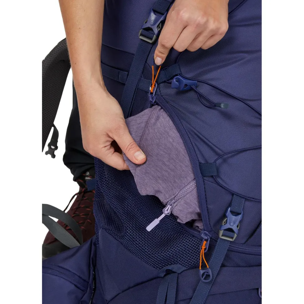 Der Women’s Sirac Plus ND40 verfügt über ein gepolstertes Tragesystem mit breiter Hüftflosse, Schulterträgern und Brustgurt. Außerdem bietet der Toploader Stauraum in den beiden elastischen Seitentaschen und ergänzt die Befestigungsmöglichkeiten mit frontaler Gummizughalterung, Trekkingstockbefestigungen und der Option eine bis zu 3 Liter große Trinkblase zu integrieren. Der große Rucksack wiegt nur knapp 1800 g und ist optimal für Rückenlängen zwischen 43 cm und 48 cm geeignet.