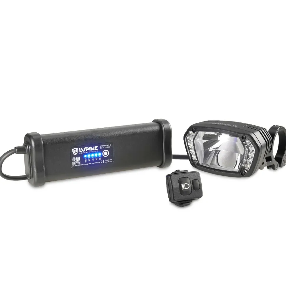Mit dem Peppi-Halter wird die Fernbedienung sicher neben dem Lenkergriff angebracht. Die SL AX 14 selbst wird mit dem Schnellspanner aus CNC-gefrästem Aluminium neben dem Vorbau montiert, den Akku befestigst Du mit den beiliegenden, beschichteten Klettbändern am Rahmen des Fahrrads. Der Akku hat eine Kapazitätsanzeige (SmartCore) und eine maximale Laufzeit von bis zu 49 Stunden.