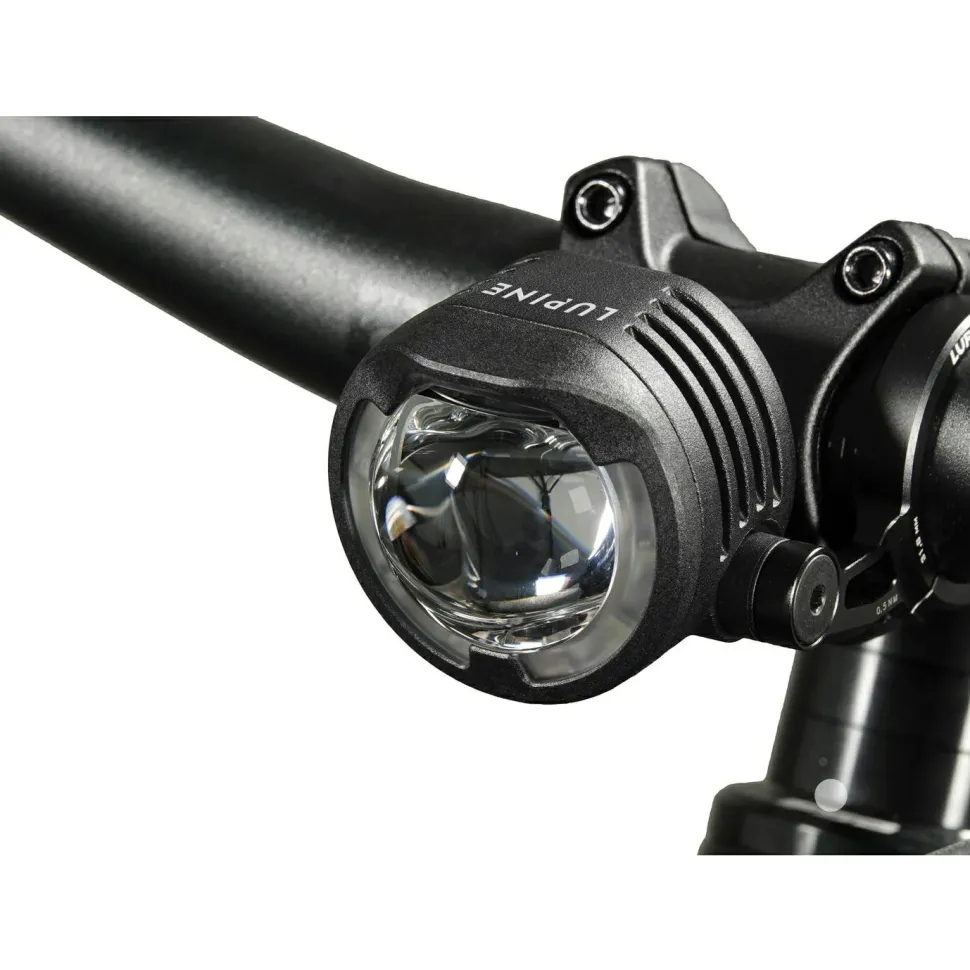 Lupine integriert die leistungsstarken LEDs der SL F Lampe in ein robustes Gehäuse aus gefrästem und schwarz eloxiertem Aluminium. Die Lampe ist am Fahrrad StVZO zugelassen und wird an E-Bikes direkt am Akku angeschlossen. So ist die Frontleuchte stets mit genügend Strom versorgt und leuchtet mit 1300 Lumen bis zu 210 Meter im Fernlichtmodus. Außerdem verfügt die Frontleuchte über ein blendfreies Abblendlicht und eine kabelgebundene Fernbedienung. Die kompakte Lampe sorgt für ein homogenes Lichtbild mit klarer Hell-Dunkel-Grenze.