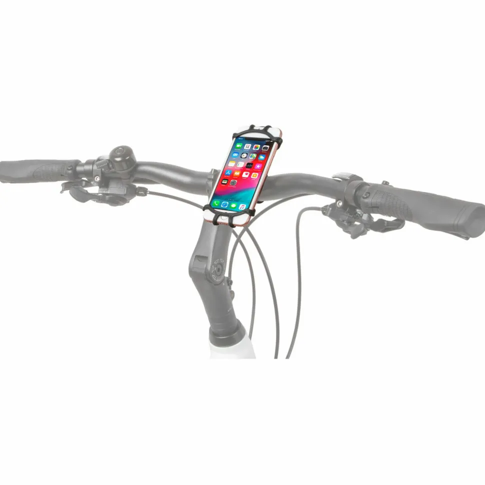 Die Lenkerhaltung kann einfach und schnell am Lenker befestigt werden. Das Smartphone lässt sich mit weichen Gummizügen sicher einspannen und wird so gut sichtbar und geschützt befestigt. Die Halterung ist außerdem um 360° drehbar, sodass Du an steilen Anstiegen, auf kurvigen Strecken und bei tief stehender Sonne einen optimalen Blick auf das Smartphone hast.