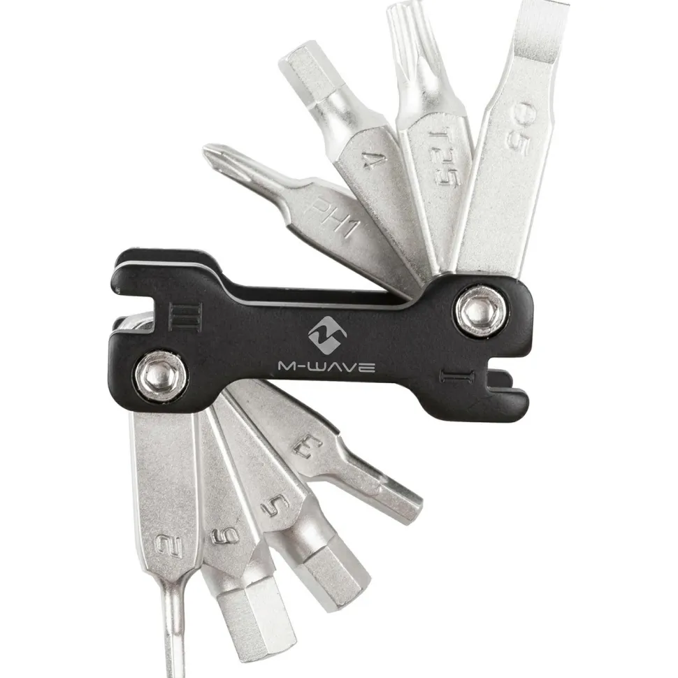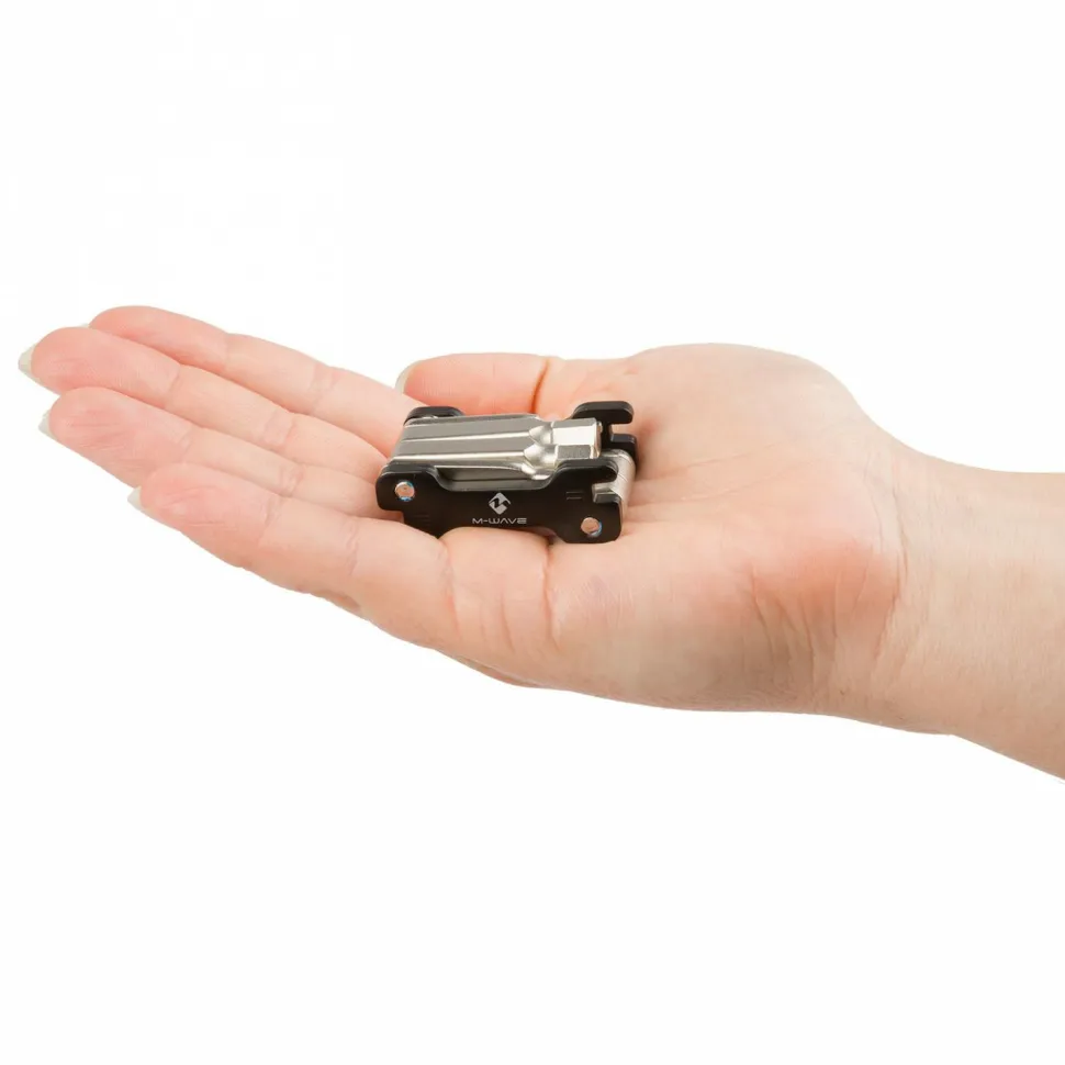 Das Little 12 Mini-Faltwerkzeug von M-Wave ist ein optimaler Begleiter für die verschiedensten Fahrradausflüge. Dank seines geringen Gewichts und den vielen verschiedenen Werkzeugen kann es immer mitgenommen werden, um bei einer Panne Abhilfe zu schaffen.