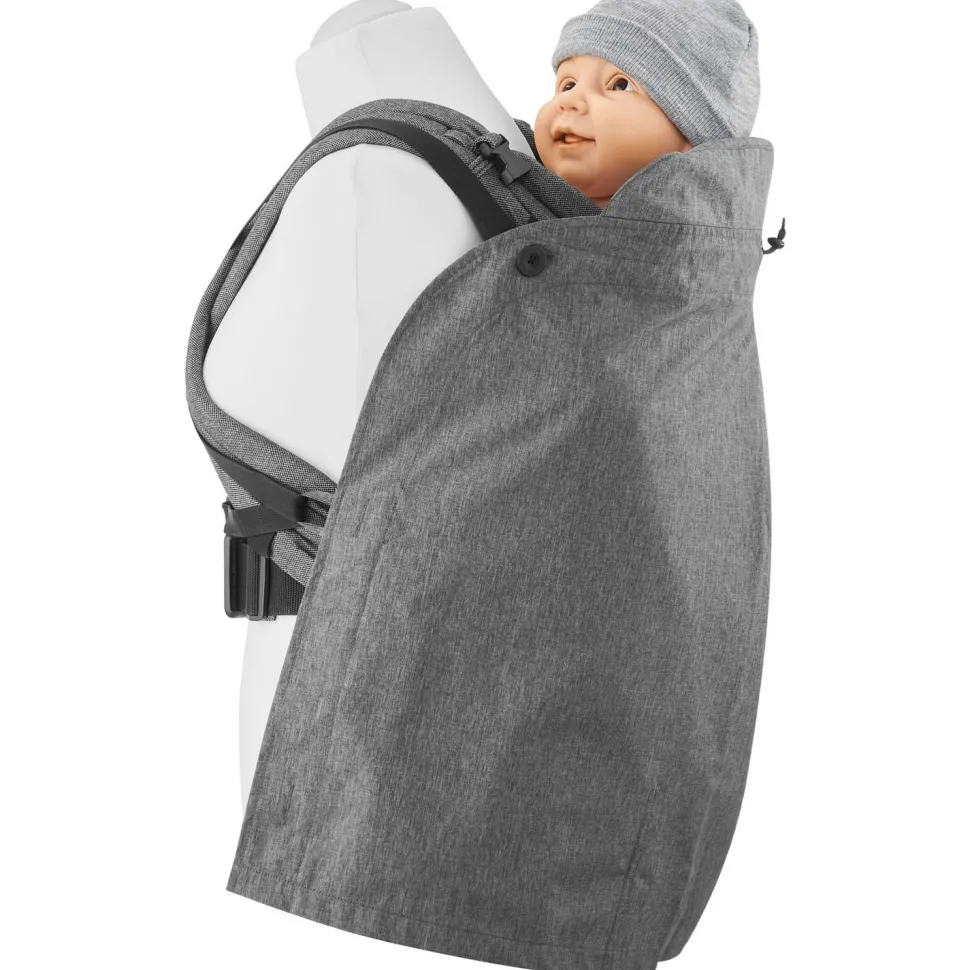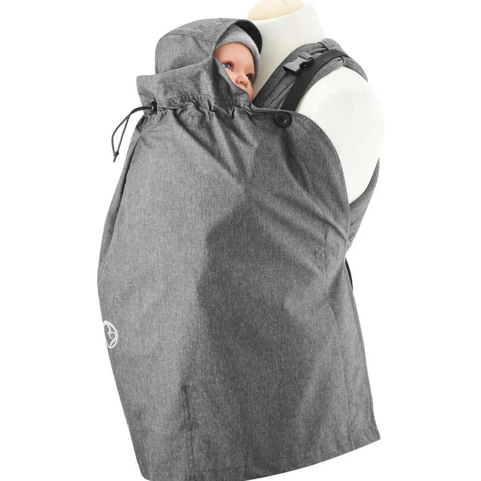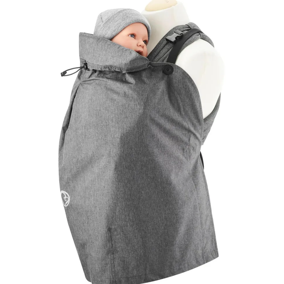 Der leichte Regenschutz Shelter von mamalila ist wind- und wasserdicht, passt über jede Art von Tragehilfe und hält das getragene Baby rundum trocken.