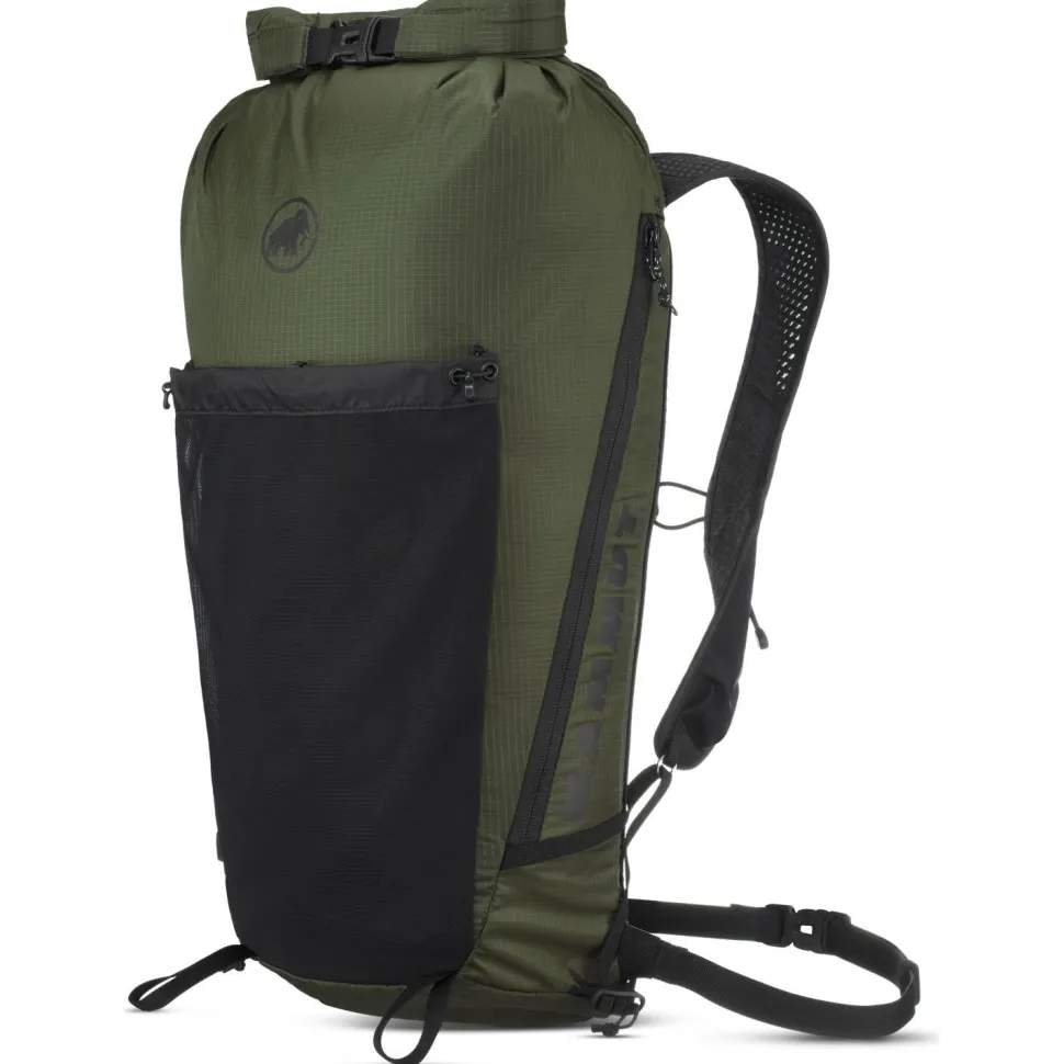 Der Aenergy 18 Wanderrucksack von Mammut begeistert durch sein schmales Design mit atmungsaktivem Tragesystem und praktischem Rollverschluss. Er bietet 18 Liter Stauraum, die sich bei Bedarf sogar auf 20 Liter erweitern lassen. Dabei wiegt der sportliche Wanderrucksack gerade einmal 380 g.