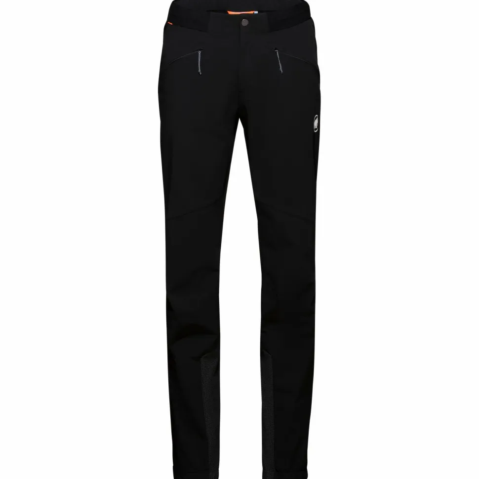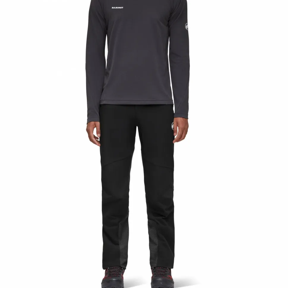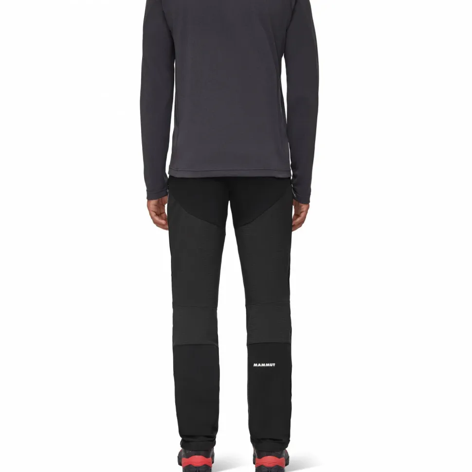 Ein Kantenschutz aus Cordura schützt die Beinenden vor Steigeisen und Stahlkanten. Außerdem sind die Beinabschlüsse mit einem Zwickeleinsatz und Reißverschluss ausgestattet. So lassen sich die Beinenden optimal über den Skistiefeln fixieren. Das griffige Antirutschband bildet dabei einen sicheren Abschluss und verhindert, dass Schnee von unten in die Beine gelangen kann. Ob Firnhang oder Felswand – die Mammut Hose ist für jedes alpine Abenteuer bereit.