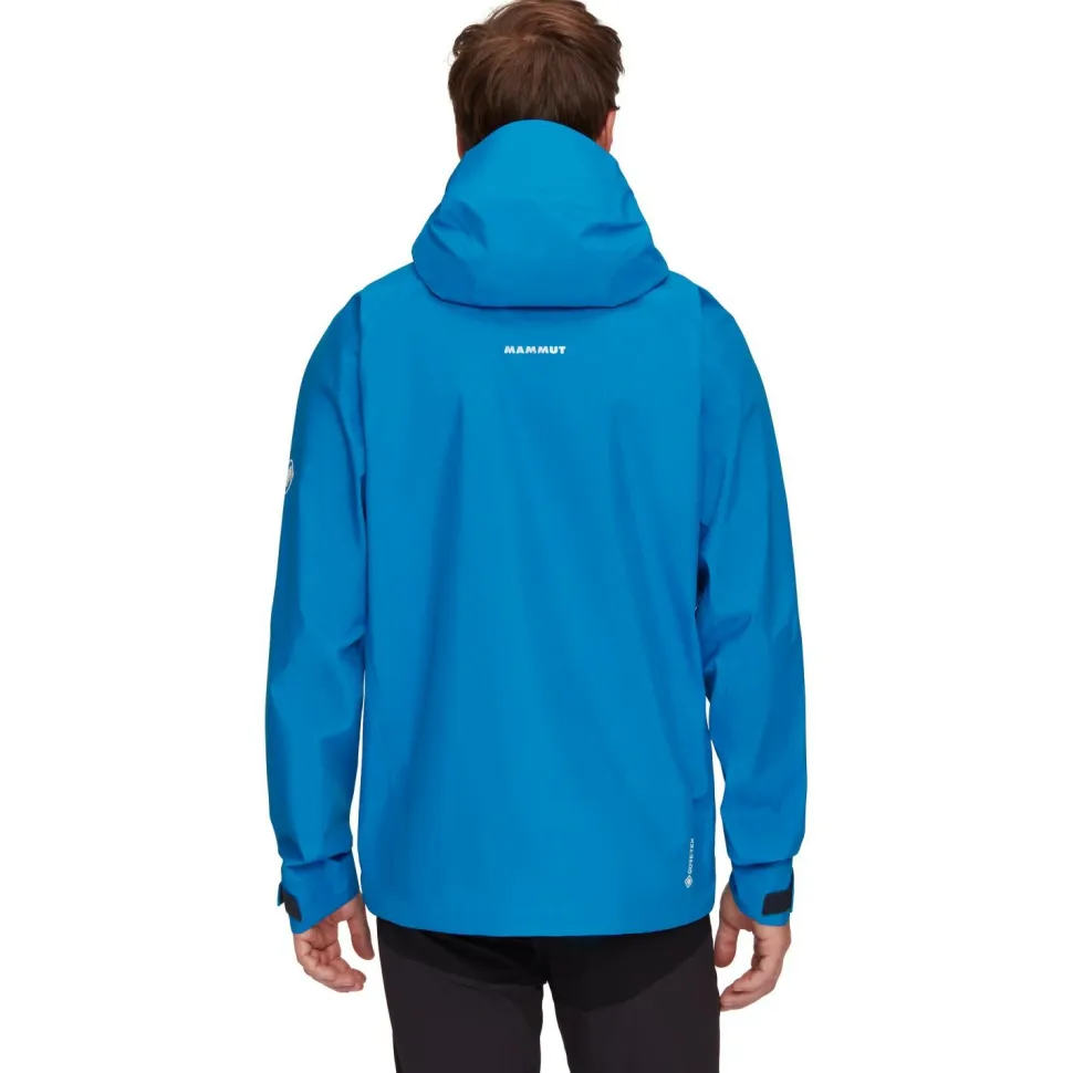 Mammut fertigt die Crater IV Hardshell Hooded Jacket aus recycelten Rohstoffen und legt dabei außerdem Wert auf umweltschonenden Herstellungsverfahren. Zudem ist die Regenjacke als bluesign Product und Fair Wear zertifiziert.