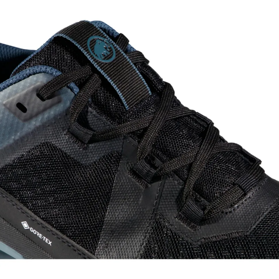 Zusätzlich ergänzt eine wasser- und schmutzabweisende DWR-Behandlung die Girun II Low GTX Multisportschuhe. Eine leichte Schnürung mit elastischer Zunge ergänzt die sportliche Konstruktion. Außerdem verstärkt Mammut die Zehenspitze mit strapazierfähigem Gummi und schützt die Schuhe so im Gelände.