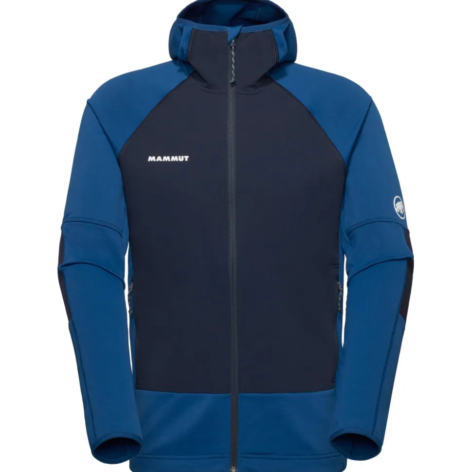 Als atmungsaktive und wärmende Zwischenschicht trägt sich die Massone Midlayer Hooded Jacket von Mammut ausgesprochen sportlich und komfortabel. Die Fleecejacke verfügt über Zwickeleinsätze unter den Armen und sorgt so für tolle Bewegungsfreiheit beim Klettern und Wandern. Mammut stattet die Jacke mit Raglanärmeln aus, so dass sie auch mit aufgesetztem Kletterrucksack oder Wanderrucksack optimal sitzt. Elastische Ärmelbündchen und ein einstellbarer Kordelzug am Jackensaum ergänzen die funktionelle Jacke. Die weiche Kapuze passt natürlich bestens unter den Kletterhelm.