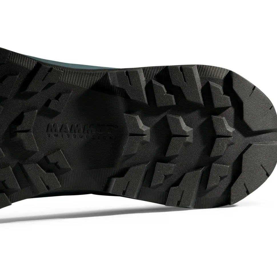 Die Mammut Swiss Design-Sohle bietet hervorragenden Grip auf verschiedenstem Untergrund, und der hochgradig rückfedernde Schaumstoff sorgt für eine effiziente Dämpfung bei jedem Schritt. Die verbesserte, etwas breitere Passform trägt sich der Schuh besonders komfortabel und die hohe Sohle bietet zusätzliche Dämpfung – ideal für lange Tage auf den Beinen.