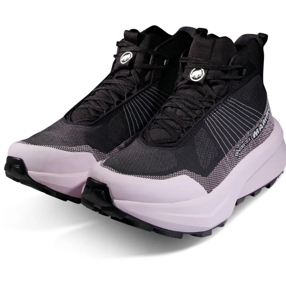 Mit ihrer Kombination aus leichtem Mesh und griffiger Vibram Megagrip Sohle eignen sich die Women’s Aenergy Mountain Mid GTX Wanderschuhe von Mammut perfekt für sportliche Touren im Gelände. Die leichten Wanderschuhe verfügen über ein 5 mm tiefes Sohlenprofil und eine vorgeformte Rocker-Sohlenkonstruktion, die sanftes Auftreten und kraftvolles Abstossen garantiert.