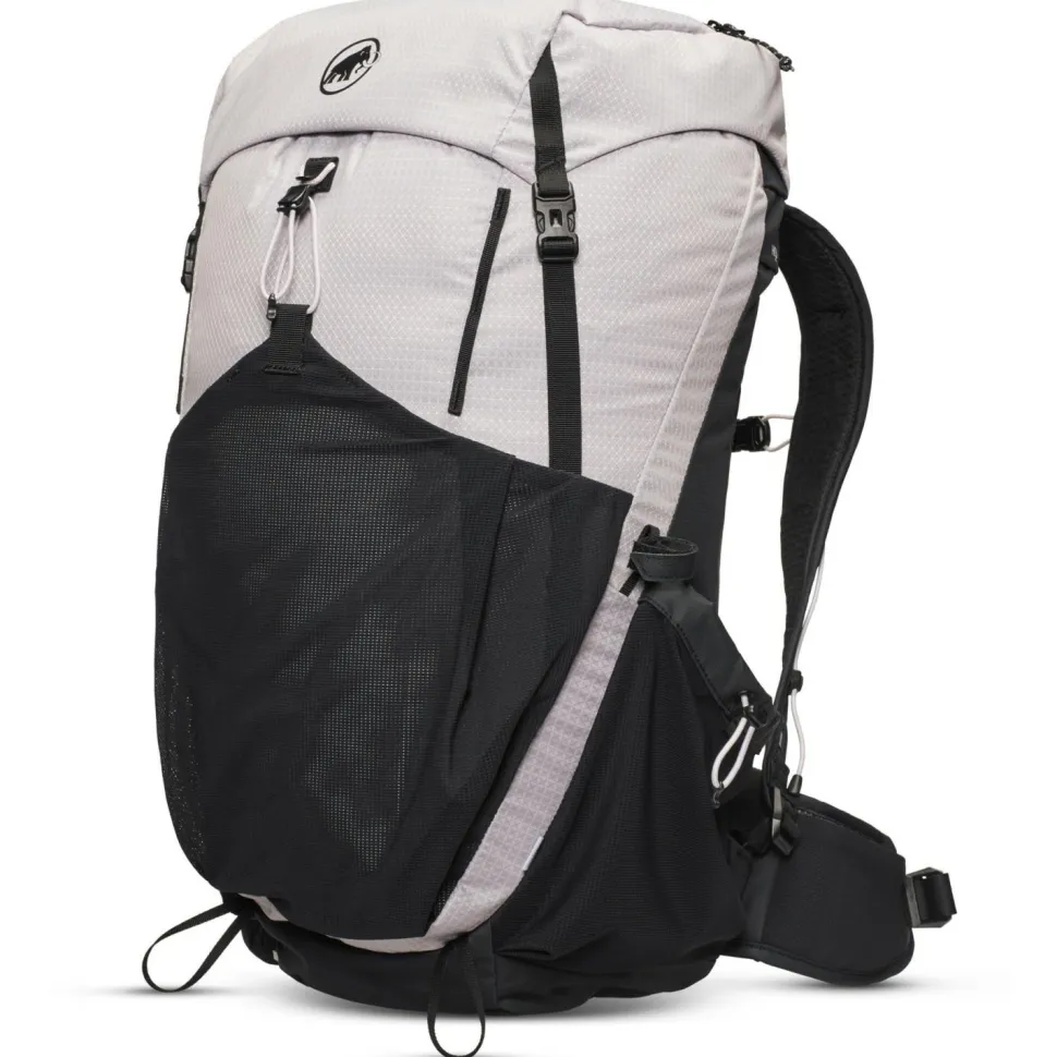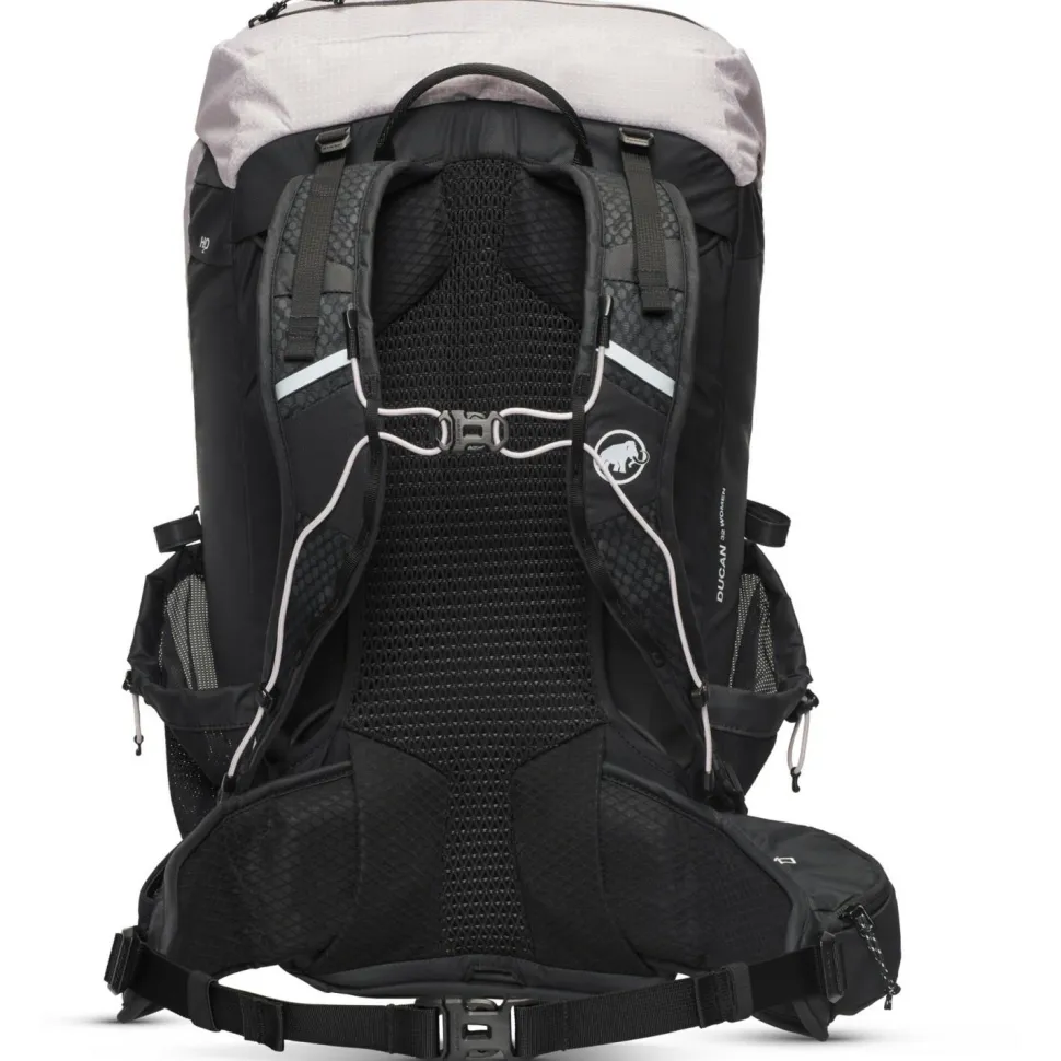 Mit 32 Liter Volumen bietet der Women’s Ducan 32 Wanderrucksack von Mammut genügend Stauraum für ausgedehnte Wanderungen und Bergtouren. Dabei unterstützt ihn sein gut belüfteter Netzrücken, ein stabilisierender Metallrahmen und ein besonders atmungsaktives und ergonomisch vorgeformtes Tragesystem. Der Wanderrucksack ist kompatibel für die Verwendung von Trinksystemen und verfügt zusätzlich über zwei praktische Seitentaschen für Trinkflaschen. Das Material mit Polyester und Polyamid ist wasserabweisend und wird bei Nässe und Regen zusätzlich durch eine abnehmbare Regenhülle geschützt. Mammut stattet den Toploader mit Deckelfach und Halterungen für Trekkingstöcke aus. Hüftgurt, Brustgurt und Tragegriff machen den leichten Wanderrucksack für Tagestouren komplett.