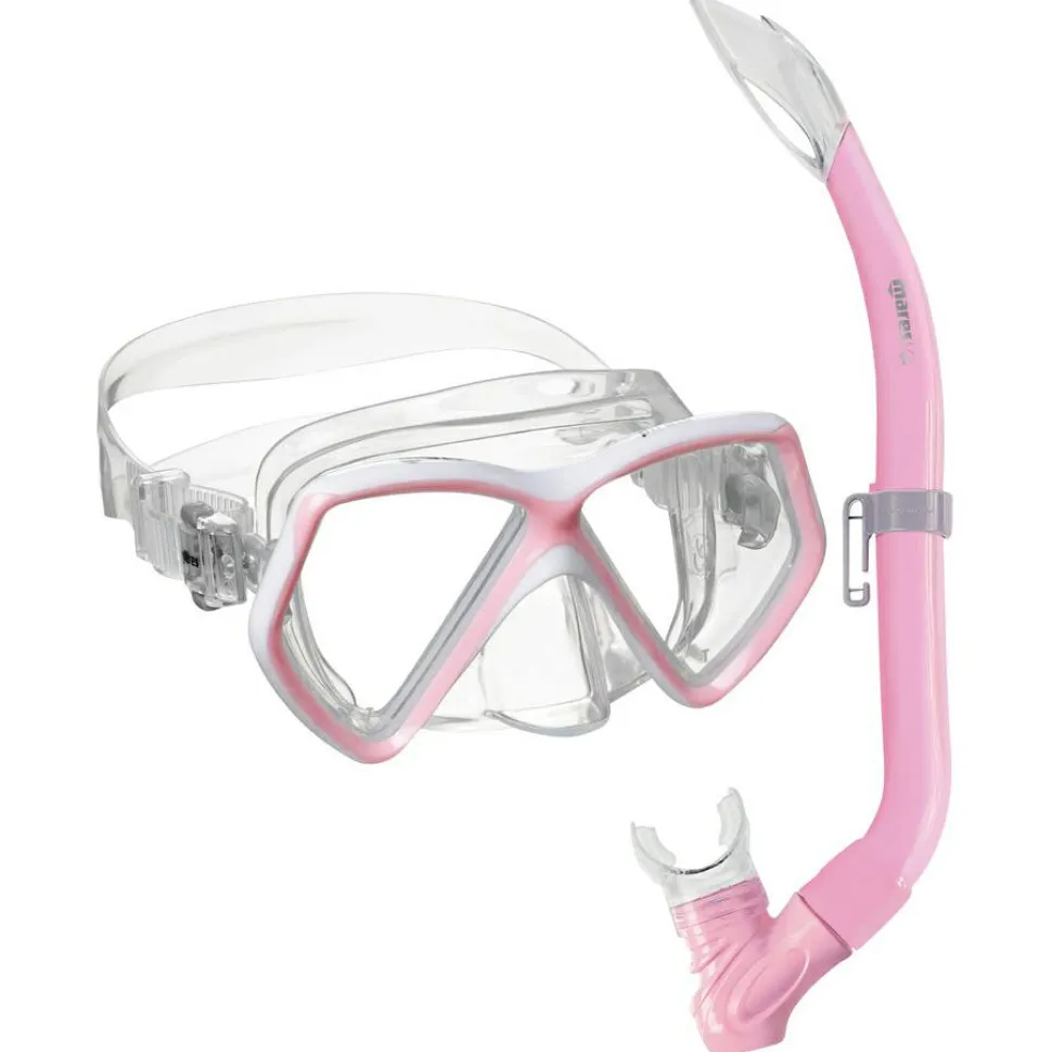 Das Schnorchelset Kid’s Pirate von Mares ist praktisch für Hallenbad und Urlaub am Meer! Der Schlauch ist robust und geriffelt, während das Mundstück aus weichem Silikon besteht, um den Komfort im Wasser zu erhöhen. Das verschiebbare Schnorchelhaltersystem ermöglicht eine einfache Verwendung des Schnorchels. Die Brille überzeugt mit einem ergonomischen Sitz und einem weiten Bereich der Unterwassersicht. Ideal für den Wassersport!
