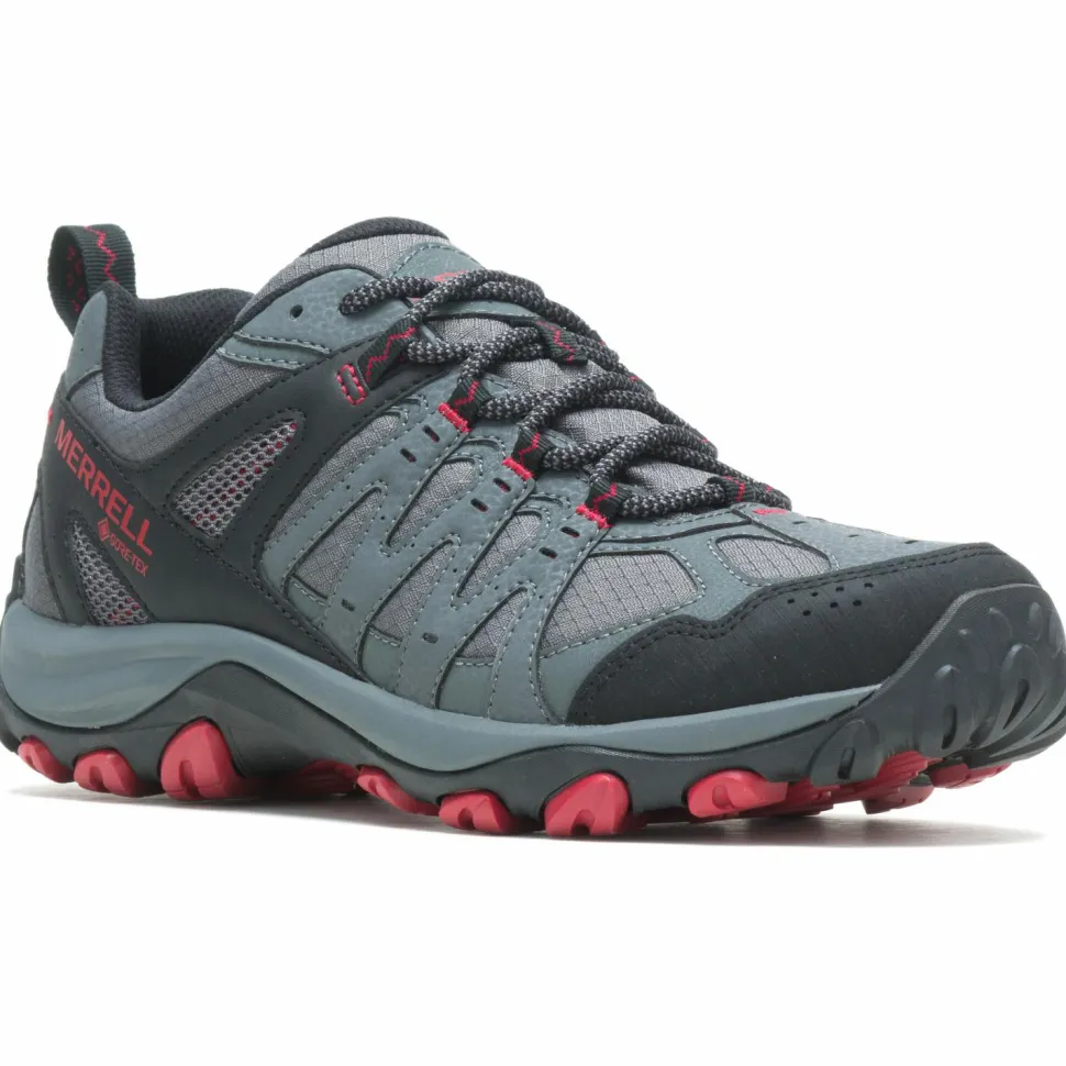 Die Accentor 3 Sport GTX Wanderschuhe von Merrell eignen sich optimal für eintägige, leichtere Wanderungen. Durch ihr synthetisches Leder mit GORE-TEX Membran sind sie nicht nur besonders robust, sondern schützen Deine Füße auch vor eindringender Nässe und sind gleichzeitig atmungsaktiv. Einen richtig guten Grip, auch bei widrigen Wetterbedingungen, bekommst Du durch die Gummi-Laufsohle. Das Gummi ist zusätzlich an Fersen und Zehen etwas höher geschnitten, sodass es die Stellen, die besonders beansprucht werden, gut schützt. So werden die Wanderschuhe noch langlebiger. Ein angenehmer Tragekomfort rundet das Gesamtpaket der Accentor 3 Sport GTX Wanderschuhe ab, denn das EVA-Fußbett und die EVA-Zwischensohle sorgen für ein bequemes und gedämpftes Auftreten.