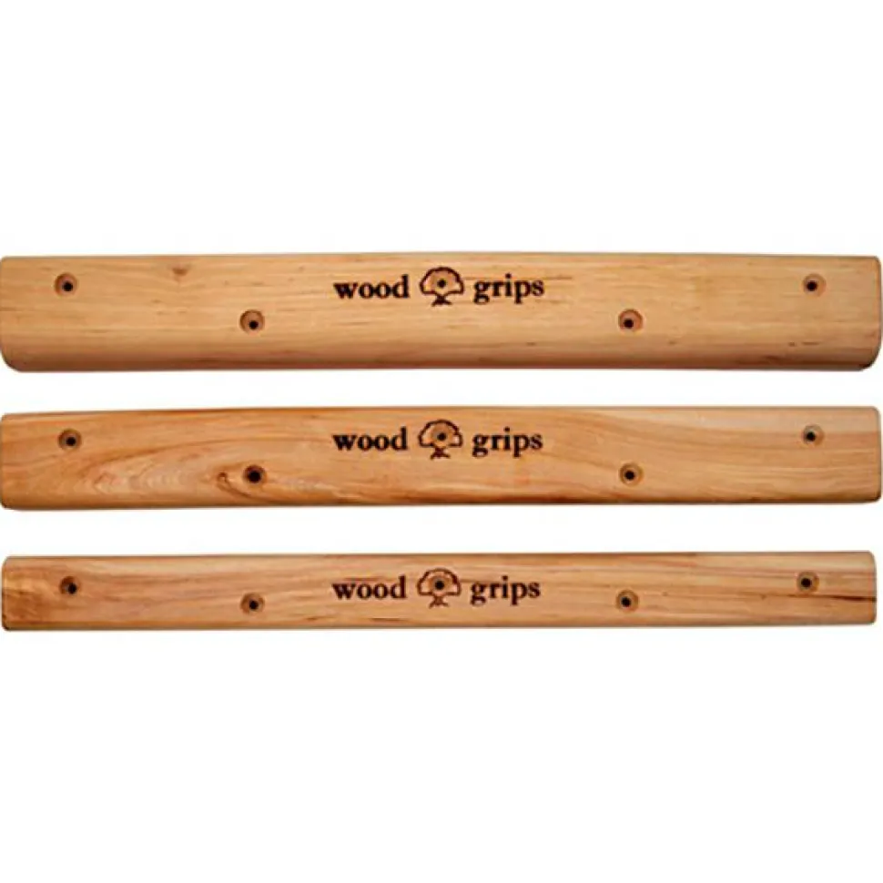 Das Set besteht aus sechs etwa 40 cm langen, vorgebohrten Leisten in drei verschiedenen Dicken. Die Leisten haben für unterschiedliche Schwierigkeitsgrade eine flache und eine eingekerbte Seite. Aus Holz gefertigt, mit abgerundeten Kanten und von Hand geschliffen, sind sie besonders hautfreundlich und haben einen tollen Grip. Da macht das Training richtig Laune.