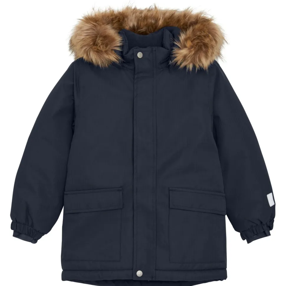 Dank der abnehmbaren Kapuze mit Kunstfellbesatz kannst Du den Look flexibel anpassen. Zwei Vordertaschen bieten Platz für kleine Schätze und reflektierende Details erhöhen die Sichtbarkeit bei schlechten Lichtverhältnissen. Elastische Ärmelbündchen mit Innenbündchen halten die Kälte draußen – so bleiben die Kids warm und haben genügend Bewegungsfreiheit.