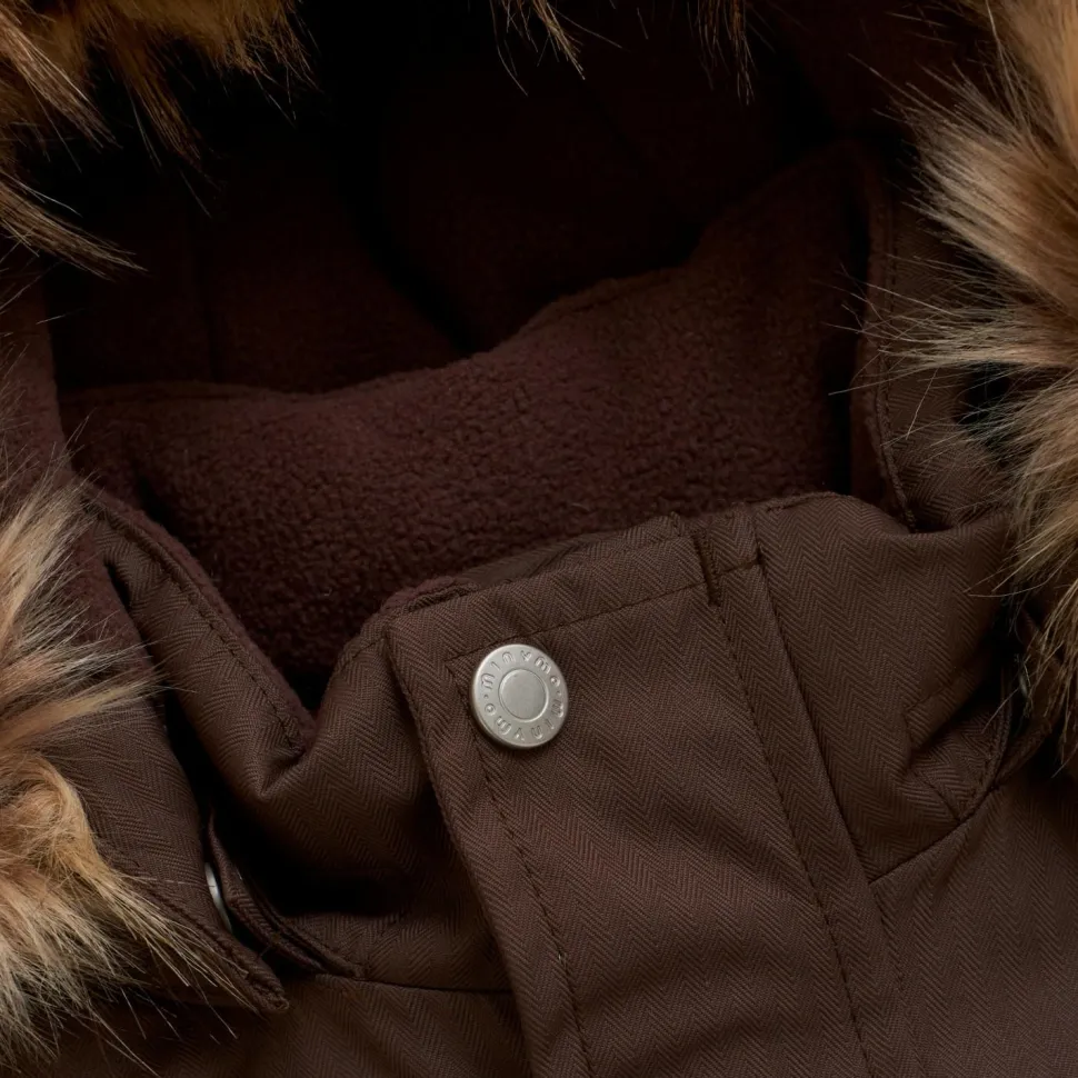 Mit der Kid’s Snow Jacket with Fur von Minymo ist der Nachwuchs bestens für kalte Tage gerüstet. Das weiche Fleecefutter sorgt für angenehme Wärme, während die wasserdichte Verarbeitung mit 10.000 mm Wassersäule zuverlässig trocken hält. Die Abdeckleiste über dem Reißverschluss schützt zusätzlich vor Wind und Nässe.