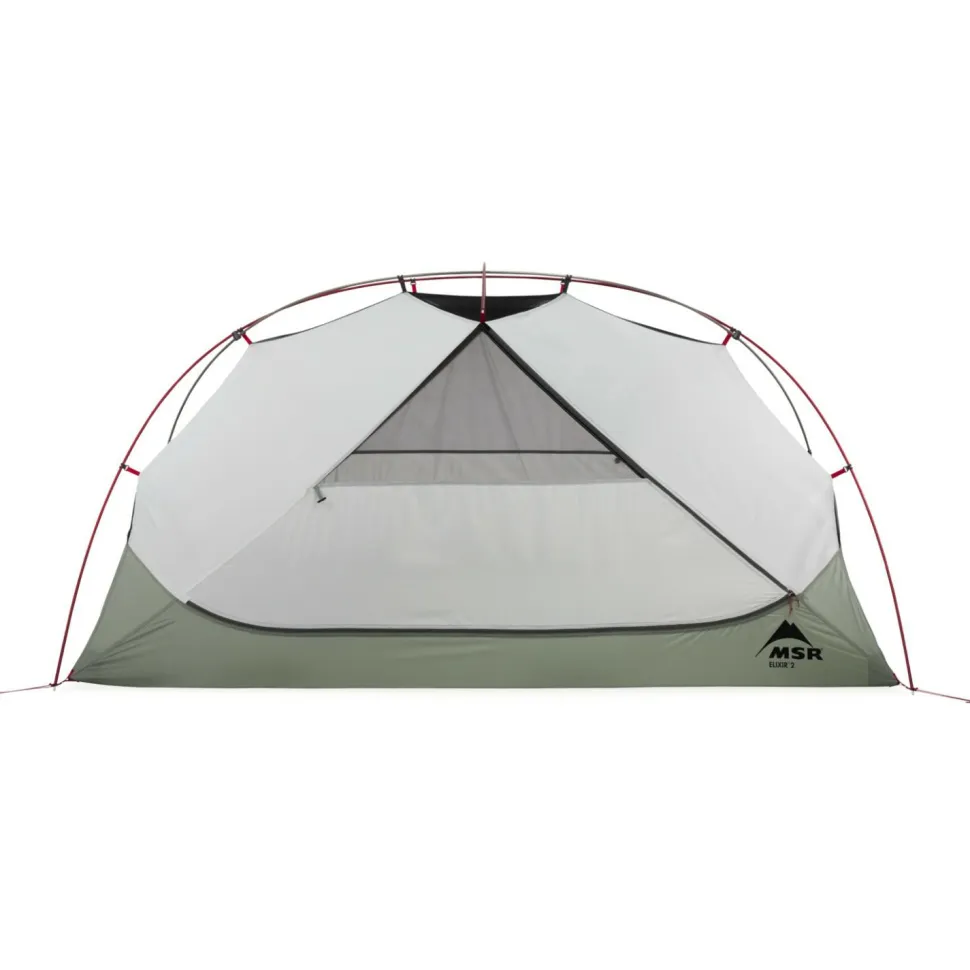 Das Elixir 2 Person Tent V3 von MSR ist ein robustes und wohnliches Zelt, das sich ideal für Mehrtagestouren oder als vielseitiges Basislager eignet. Der rechteckige Grundriss bietet zwei Personen großzügige 2,82 m² an Innenfläche und ausreichend Platz für moderne, breite Isomatten. Die spezielle Stangengeometrie schafft eine Giebelhöhe von 104 cm, wodurch Du Dich bequem bewegen und umziehen kannst. Eine ausgewogene Kombination aus Netz- und Feststoffpaneelen sorgt für gute Belüftung, angenehme Wärme und den nötigen Sichtschutz. Praktische Ablagen über Kopfhöhe sowie Taschen mit Kabelführungen helfen Dir, persönliche Ausrüstung übersichtlich zu verstauen.