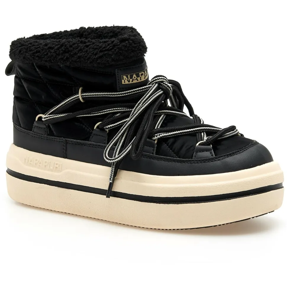 Mit dem Women’s Mid Boot Glacier von Napapijri bist Du bestens für kalte Tage gerüstet. Die knöchelhohe Silhouette mit voluminösem Design verleiht Deinem Winterlook Charakter, während die Schnürung für Halt sorgt. Dank des warmen Futters bleiben Deine Füße angenehm temperiert – auch bei frostigen Temperaturen.