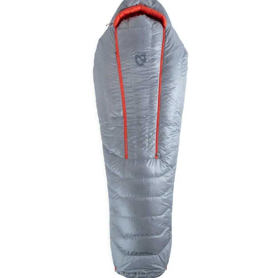 Nemo stattet den Schlafsack mit einem frontalen Reißverschluss und einem extra Thermo Gill Ventilationsreißverschluss aus. Eine warme Kapuze, ein Wärmekragen und die 3D-Fußbox ergänzen den Schlafsack. Für große und kleine Personen ist der Nemo Schlafsack in drei verschiedenen Größen erhältlich. Der 700 g leichte Daunenschlafsack (700 g in Größe „Regular“) lässt sich kompakt verstauen und findet im mitgelieferten Packsack bequem Platz im Tourengepäck.