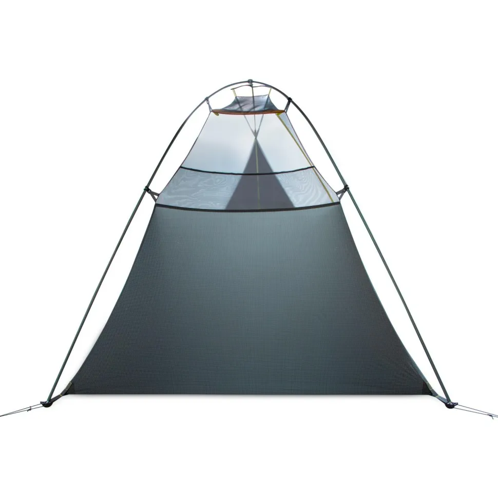 Das minimalistische Gestänge lässt sich blitzschnell aufbauen und schafft zusammen mit den raumschaffenden Flybar- und Türclips einen großzügigen Innenraum. Die dreieckigen, reflektierenden Abspannleinen und Eckstreben erhöhen das Volumen am Fußende und schützen den Schlafsack vor Kondenswasser von den Zeltwänden. Die Apsiden bietet ausreichend Platz für Deine Ausrüstung und sorgt mehr Komfort.