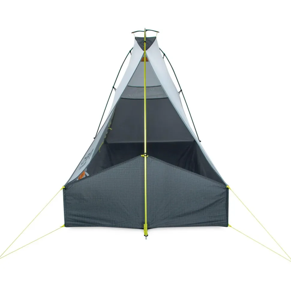 Das Zelt verfügt über eine Nightlight Pocket, die Deine Stirnlampe in eine Zeltlaterne verwandelt und blaues Licht entfernt, um ein gleichmäßiges Leuchten zu erzeugen. Die Gatekeeper-Clips ermöglichen es Dir, die Zelttür einhändig zurückzubinden. Das weiße No-See-Um-Mesh an den Seiten erhöht die Privatsphäre, während das schwarze Mesh oben nachts nahezu transparent wird und einen klaren Blick auf die Sterne ermöglicht.