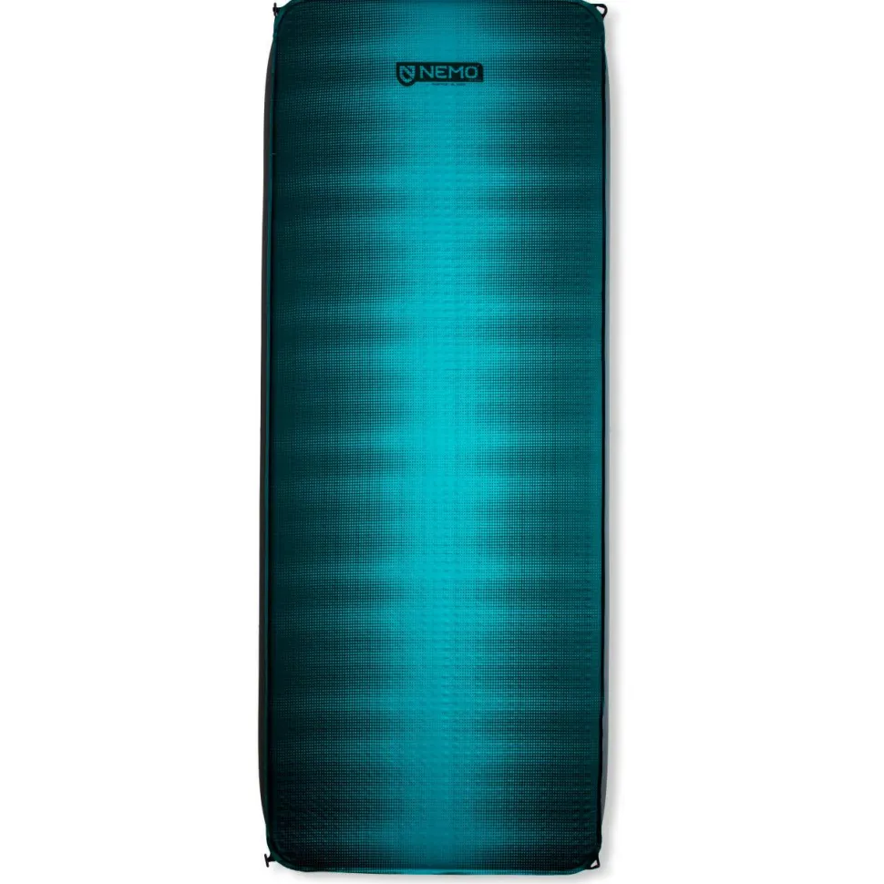 Die Roamer XL Isomatte von Nemo punktet mit ihrer tollen und gemütlichen Breite und bietet dem Schlafenden einen angenehmen Schlafkomfort. Damit die Matte auch bei niedrigen Temperaturen eingesetzt werden kann und die Kälte vom Boden nicht an den Schlafenden herankommen lässt, ist sie mit isolierenden Materialien versehen. Zudem ermöglicht der mitgelieferte Pumpsack ein schnelles und einfaches Befüllen der Matte mit Luft. Den Großteil der Befüllung übernimmt jedoch die selbstaufblasende Funktion des Ventils.