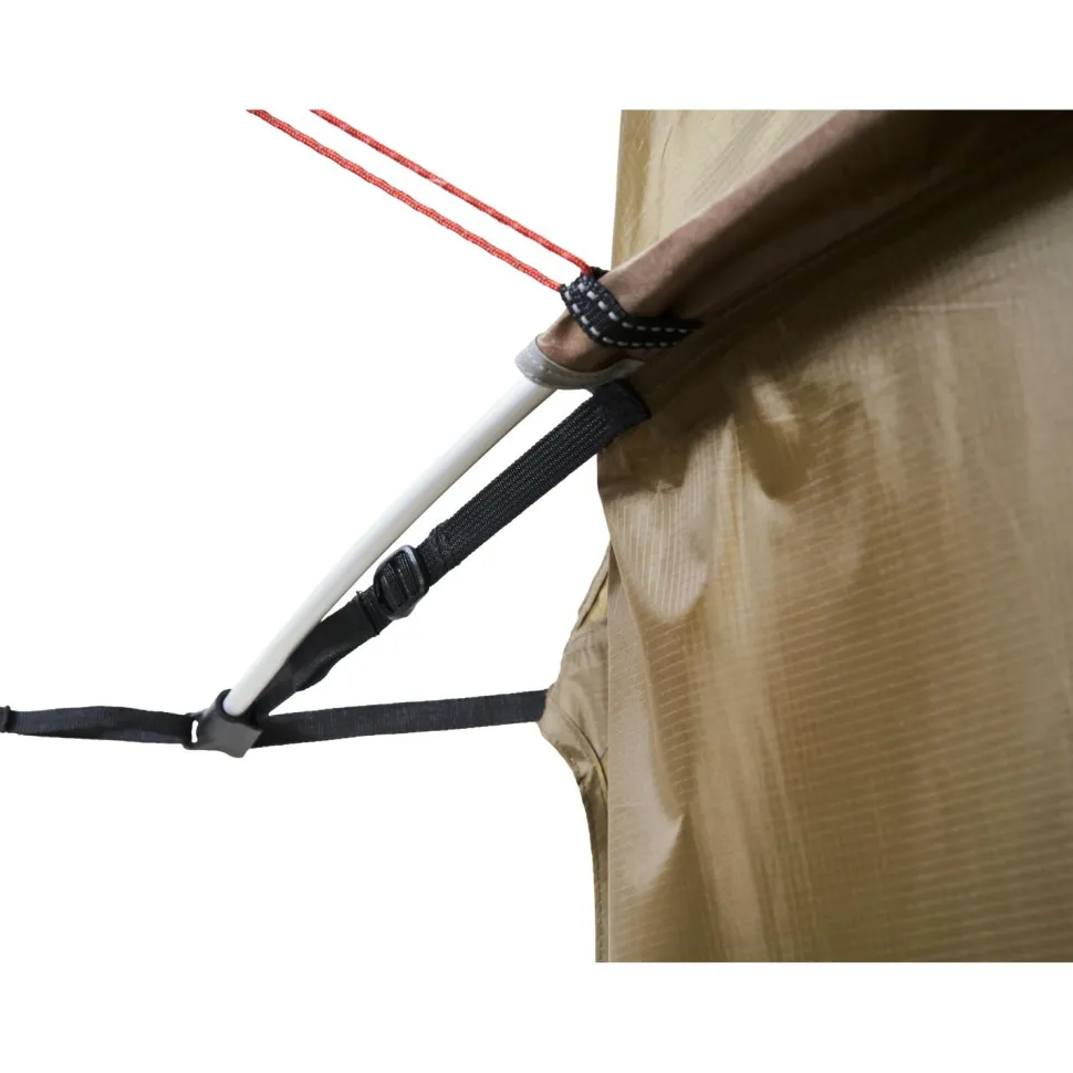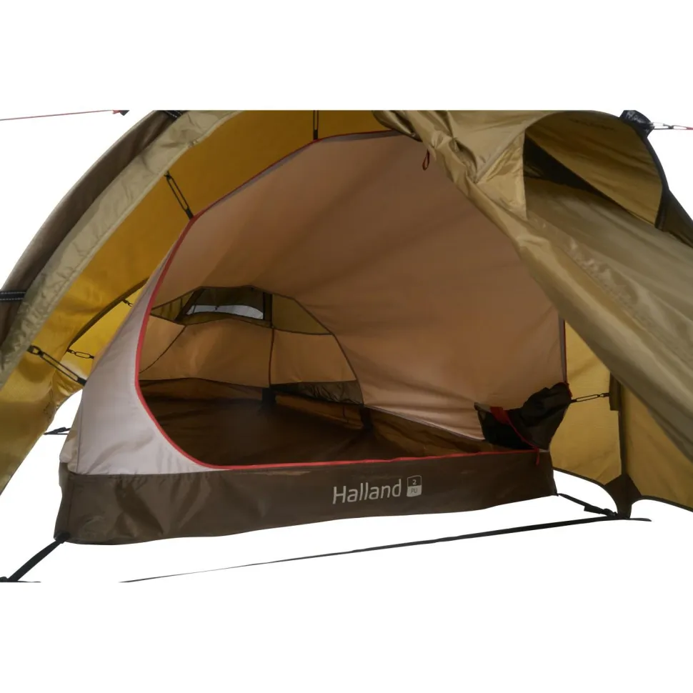 Zugang zum Zelt hast Du durch einen geräumigen Eingang, der im Vergleich zum Vorgängermodell vergrößert ist. Im Innenzelt ist durch die Tunnelkonstruktion genügend Platz, um mit viel Beinfreiheit zu liegen. Dank des cleveren Materials ist durch praktische Atmungsaktivität beim Schlafen ein zuverlässiger Feuchtigkeitsaustausch garantiert. Außerdem ist das Innenzelt wasserabweisend und hält Dich beim Schlafen schön trocken. Auch der Boden und das Außenzelt überzeugen durch intelligente Funktionalität. Mit einer Polyurethan-Beschichtung ist das Außenzelt zuverlässig wasser- und winddicht. Der Boden schützt mit einer Wassersäule von 8000 mm ebenfalls zuverlässig vor Nässe. Obendrein punktet das Halland 2 PU (2.0) Tent mit seinem moderaten Gewicht und dem kleinen Packmaß und überzeugt damit Outdoor-Fans auf ganzer Linie.