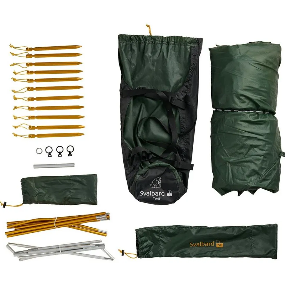 Zugang zum Svalbard 1 Sl (2.0) Tent hast Du durch einen geräumigen Eingang, der im Vergleich zum Vorgängermodell vergrößert wurde. Ein- und Ausstieg ist damit noch komfortabler. Im Innenraum hast Du bequem Platz für Dich und Dein Gepäck und dank Kuppelkonstruktion ist liegen und Sitzen bequem möglich. Mit Aluminium-Gestänge und intelligentem Design ist das Zelt trotzdem leicht und lässt sich mit kleinem Packmaß platzsparend in Deinem Gepäck verstauen. So bist Du mit dem 1 Sl (2.0) Tent komfortabel in der Natur unterwegs!