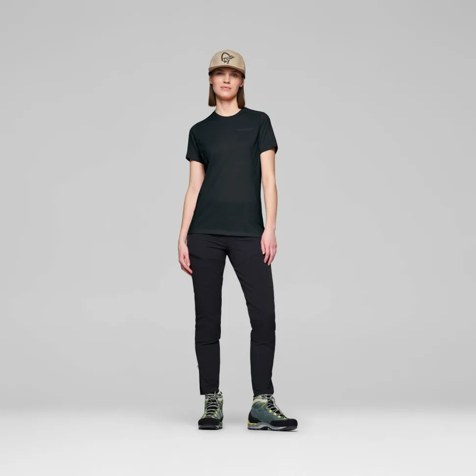 Das Women’s Falketind EqualiserUll T-Shirt von Norrøna vereint Merinowolle und Kunstfaser zu einer durchdachten Mischung, die Dir auf Skitouren echten Mehrwert bietet. Die Merinowolle sorgt dafür, dass Du auch bei schweißtreibenden Anstiegen von der temperaturregulierenden und geruchshemmenden Wirkung profitierst. Dank der Kunstfaser bleibt das Shirt robust und trocknet schnell – ideal, wenn es mal anstrengend wird. Mit einer Materialstärke von etwa 125 g/m² ist das Shirt angenehm leicht, ohne auf Schutz zu verzichten – perfekt als Baselayer oder solo.