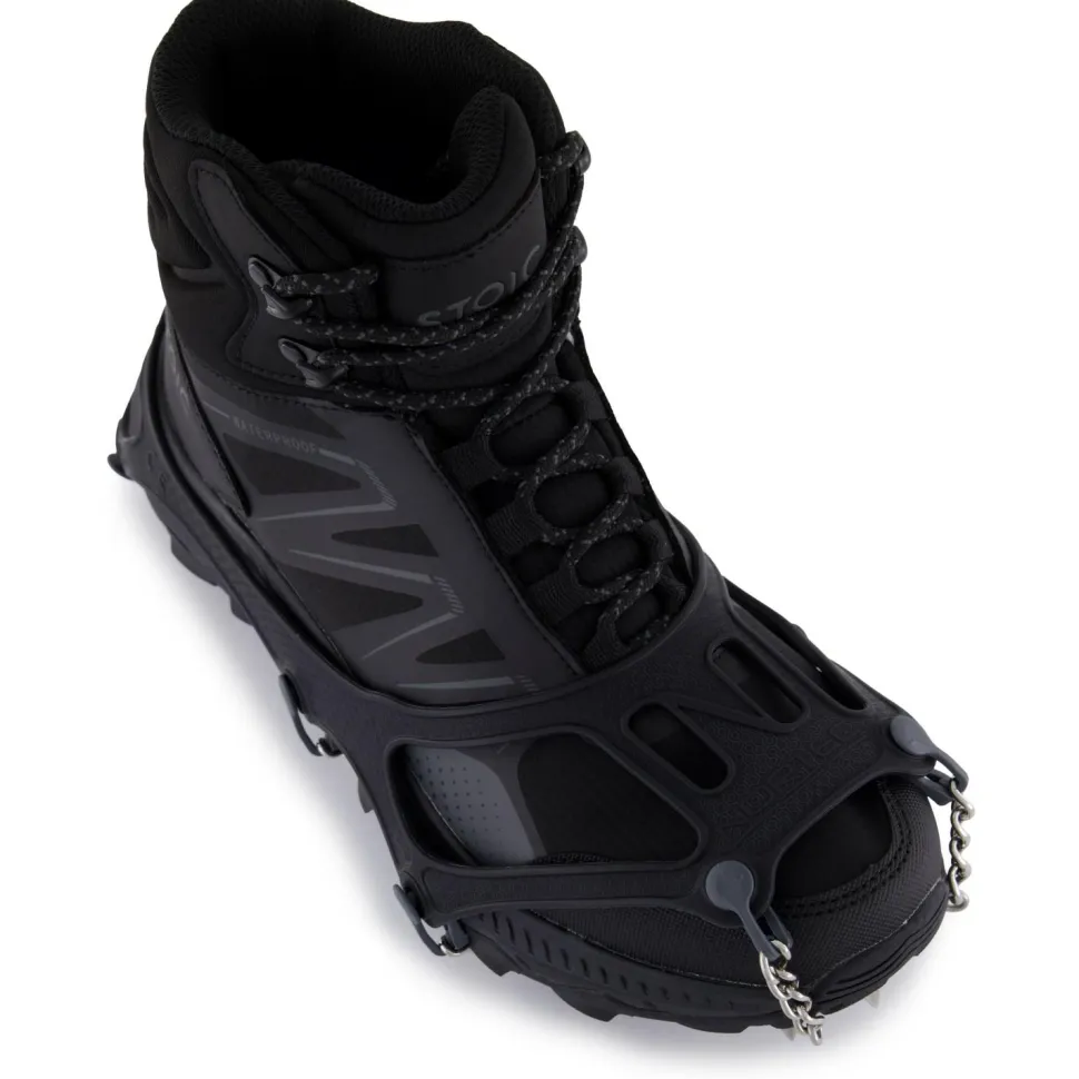 Sie lassen sich dank ihrer durchdachten Konstruktion mit dehnbarem Elastomer schnell und einfach über die Schuhe ziehen. Die Kombination aus Kettenelementen, Verbindungsteilen und Platten aus hochresistentem Stahl mit Spikes auf der Unterseite machen die stabile und durchdachte Konstruktion komplett. Egal ob Dir Outdoor Running, Trekking, leichter Alpinismus, Nordic Walking oder ein Spaziergang auf dem Programm steht, die Schuhkrallen sind perfekt für die unterschiedlichsten Freizeitaktivitäten und Arbeiten im Freien.