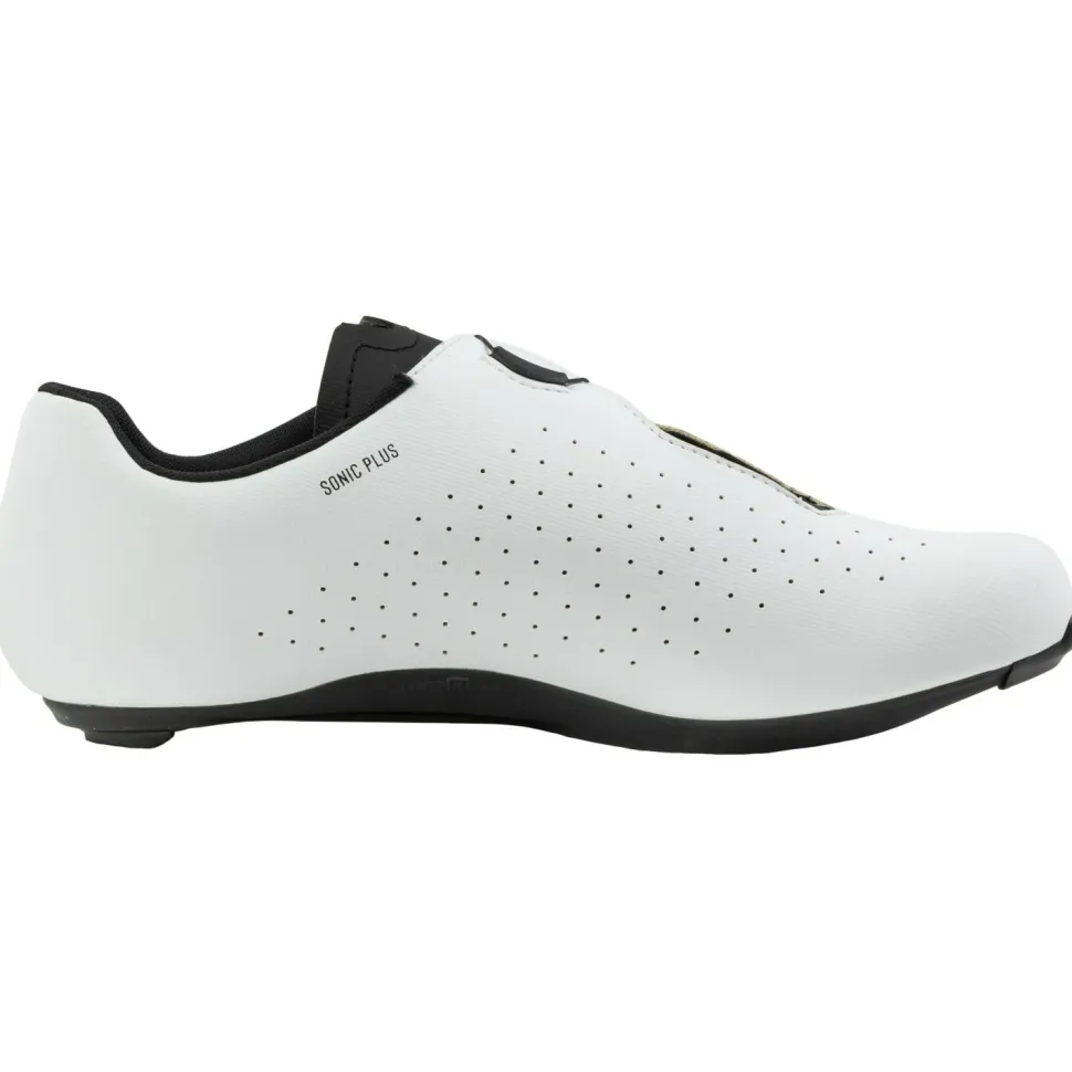 Wenn Du einen Rennradschuh suchst, der Dir auf langen Strecken Komfort und Stabilität bietet, lohnt sich ein Blick auf die Northwave Sonic Plus. Die Passform ist sportlich und eher schlank gehalten, was für viele Fahrer ein direkteres Fahrgefühl bedeutet. Das Obermaterial besteht aus einem leichten Verbundstoff mit asymmetrischem Design, das Druck gleichmäßig verteilt und durch integrierte Belüftungsöffnungen für eine gute Luftzirkulation sorgt – besonders angenehm bei höheren Temperaturen.