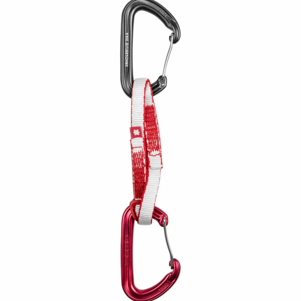 Beim Tradklettern und Mehrseillängenklettern darf die Hawk Wire ST-Sling Set Dyn 12 mm von Ocun nicht fehlen. Die beiden leichten Schnappkarabiner werden durch eine sehr abriebfeste Dyneema-Schlinge miteinander verbunden. Beide Karabiner sind Drahtschnapper, durch welche ein ungewolltes Öffnen z.B. durch Schläge an den Fels verhindert werden. Außerdem bleibt der Seilkarabiner durch das Biner Fix Gummi immer in der richtigen Position, sodass Du Dein Seil leichter clippen kannst.