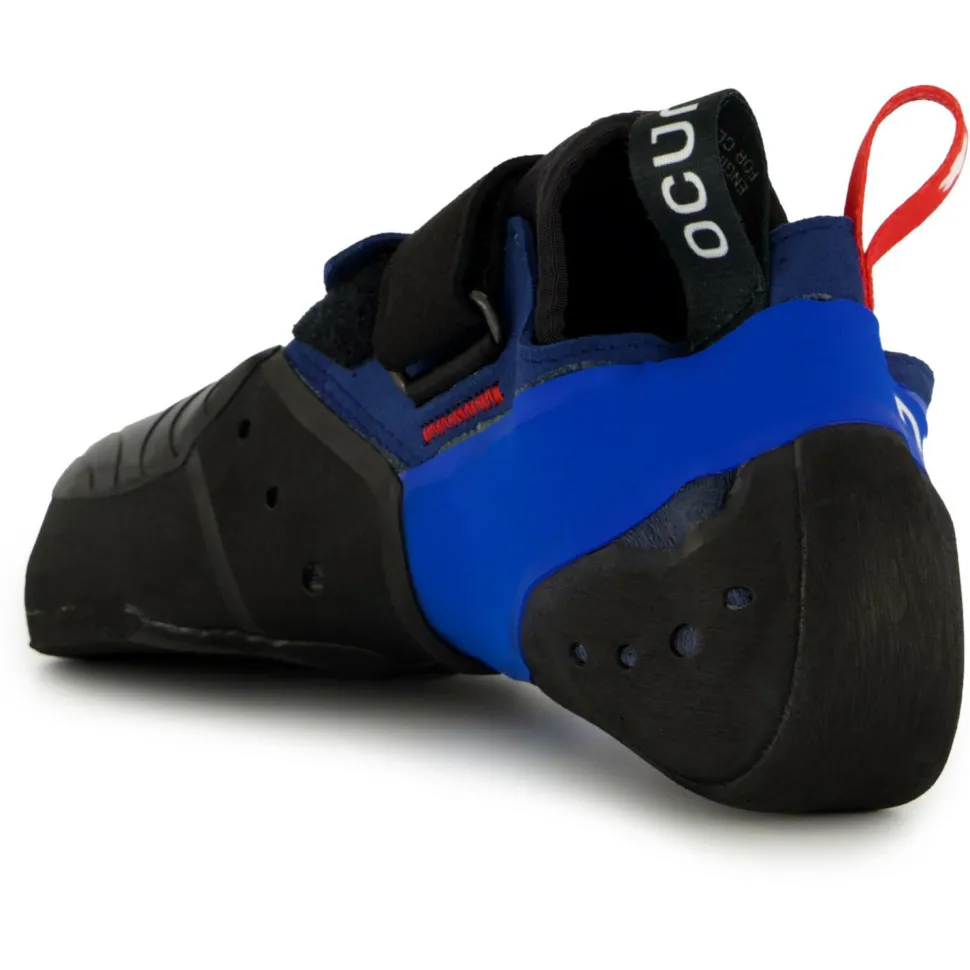 Harte Felskletterrouten sind das Lieblingsterrain des Ozone HV Kletterschuhs von Ocun, denn hier kann er mit seiner Kantenpower richtig punkten! Auf schlechten Trittleisten steht er wie eine Eins und selbst Mikro-Tritte lassen sich noch recht präzise anstehen. Seine Vorspannung in Fußgewölbe und im Fersenrand übertragen die Kraft perfekt auf die Spitze. Eine 3D-förmige Zwischensohle unterstützt die Zehen, während die XS Grip Sohle aus dem Hause Vibram die nötige Reibung liefert. Die HV-Variante des Ozone ist etwas großvolumiger und eine gute Option für Kletterer mit breiteren Füßen. Stark asymmetrisch geschnitten schmiegt sich mit seiner elastischen Zunge satt um den Fuß. Er besitzt einen ausgeprägten Downturn, die Fusspitze ist anatomisch für aufgestellte Zehen geformt.