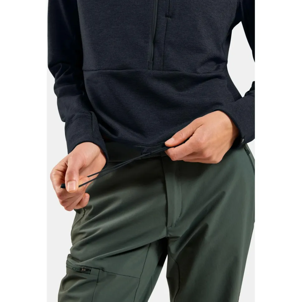Die Odlo Women’s Mid Layer 1/2 Zip Grid Fleece Jacke ist Dein idealer Begleiter für Outdoor-Abenteuer. Der durchgehende Front-Reißverschluss mit Kinnschutz sorgt dafür, dass Du den Halsbereich vor Reibung schützen kannst und gleichzeitig die Belüftung einfach anpassen kannst. Der Stehkragen bietet zusätzlichen Schutz vor Wind und Kälte, während die elastischen Ärmelbündchen verhindern, dass kalte Luft in die Ärmel eindringt. Diese Eigenschaften sind besonders wichtig, wenn Du bei wechselndem Wetter unterwegs bist und Dich wohlfühlen möchtest.