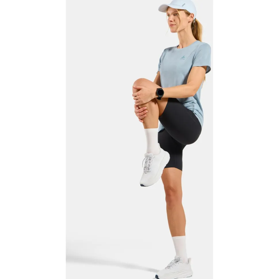Das Women’s Zeroweight Engineered Chill-Tec Crew Neck von Odlo eignet sich für lange Läufe an warmen Tagen. Es ist atmungsaktiv und schnelltrocknend. Das Laufshirt schmiegt sich angenehm an Deinen Körper an und bietet Dir höchsten Tragekomfort. Die Materialzusammensetzung enthält 77 % recyceltes Polyester. Reflektierende Details verbessern Deine Sichtbarkeit und Sicherheit bei schlechten Lichtverhältnissen. Der sportliche Look kann mit vielen Laufoutfits kombiniert werden.