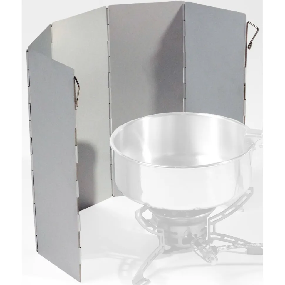 Immer dann hilfreich, wenn man bei schlechtem Wetter Probleme hat den Kocher anzubekommen: Der Alu Windschutz faltbar von Origin Outdoors. Er besteht aus leichtem Aluminium, lässt sich platzsparend verpacken und hat zwei Sicherheitsstifte, damit er seinerseits nicht hinweggeweht werden kann. In zwei Ausführungen mit 5 oder 8 Lamellen erhältlich.