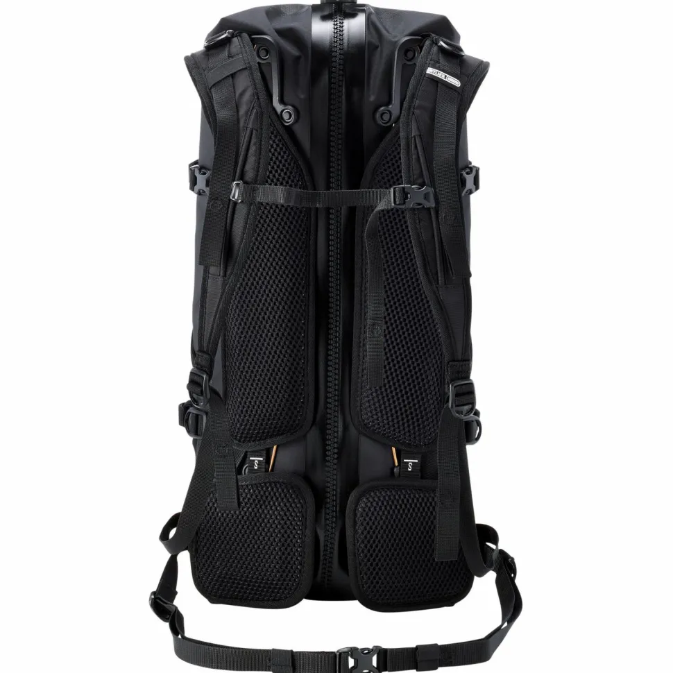 Der Atrack Bike 25 Bike-Rucksack von Ortlieb ist ein modularer Active-Travelling-Rucksack, der sich perfekt für Bikepacking und viele andere sportliche Outdooraktivitäten eignet. Mit seinem bewegungsfreundlichen Tragesystem aus gepolstertem Rückenbereich, Schulterträgern und abnehmbarem Hüftgurt trägt sich der Bike-Rucksack bequem beim Radfahren und Wandern. Er verfügt über eine große Reißverschlussöffnung im Rückenpolster und abnehmbare Kompressionsriemen. Die Rückenlänge lässt sich beim Atrack Bike 25 individuell einstellen und sorgt so für optimalen Sitz. Die wasserdichte Konstruktion ergänzt Ortlieb mit einem hermetisch abgedichteten Durchlass für ein Trinksystem. Insgesamt 25 Liter Stauraum bietet der wasserdichte Rucksack und sorgt im Inneren mit vier Innentaschen, Innenkompression und Schlüsselhaken für praktische Aufbewahrungsmöglichkeiten. Der Atrack Bike 25 Bike-Rucksack ist wetterfest nach den IP 67 Kriterien und hält auch kräftigen Regenschauern dauerhaft stand.