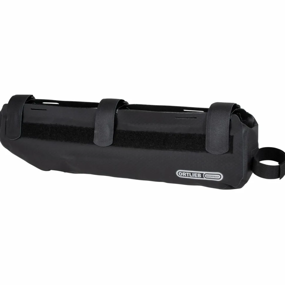 Um beim Bike-Packing das Packvolumen zu maximieren, lässt sich die Frame-Pack Toptube 4 Fahrradtasche von Ortlieb auf dem Oberrohr befestigen. Sie bietet 4 Liter Stauraum und kann mit bis zu 3 kg Ausrüstung befüllt werden. Mit individuell positionierbaren Gurten mit Klettverschlüssen wird die Rahmentasche sicher fixiert. Ihr abriebfestes Nylongewebe mit PU-Beschichtung ist dabei dauerhaft wasserdicht und schützt auch hervorragend vor Staub und Schmutz. Als Verschluss setzt Ortlieb auf einen wasserdichten Reißverschluss, der sich weit öffnen lässt und so einen gute Überblick über den Inhalt bietet. Die wetterfeste Rahmentasche eignet sich bestens für Tagestouren und Radreisen und ist auch für die Montage an Carbon-Rahmen ideal geeignet.
