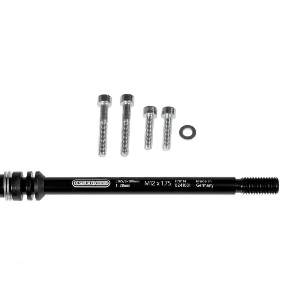 Die Thru Axle M6-Connector von Ortlieb ist eine Adapter-Steckachse zur Montage von Gepäckträgern oder Anhängern über die integrierten M6 Gewinde. Sie kann Achsen bis 180 mm Achslänge ersetzen und ist somit sehr universell einsetzbar. Durch mitgelieferte Spacer kann die Adapter-Steckachse auf die benötigte Länge angepasst werden.
