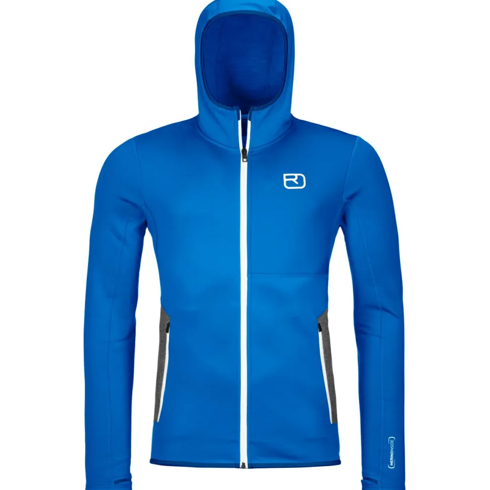Durch das elastische Material eignet sich die vielseitige Fleece Hoody von Ortovox ideal zum Skifahren, für Skitouren und alpine Unternehmungen in den Bergen. Die flexible Kapuze passt sich beim Bergsport bequem an Deinen Kopf an und kann problemlos unter einem Kletter- oder Skihelm getragen werden. Der hoch geschnittene Kragen schützt gegen Auskühlung durch den kalten Wind.