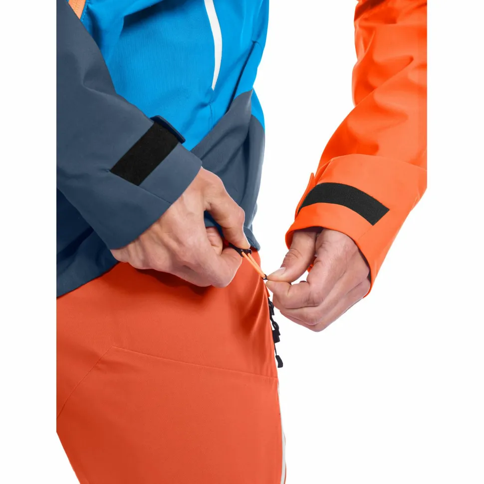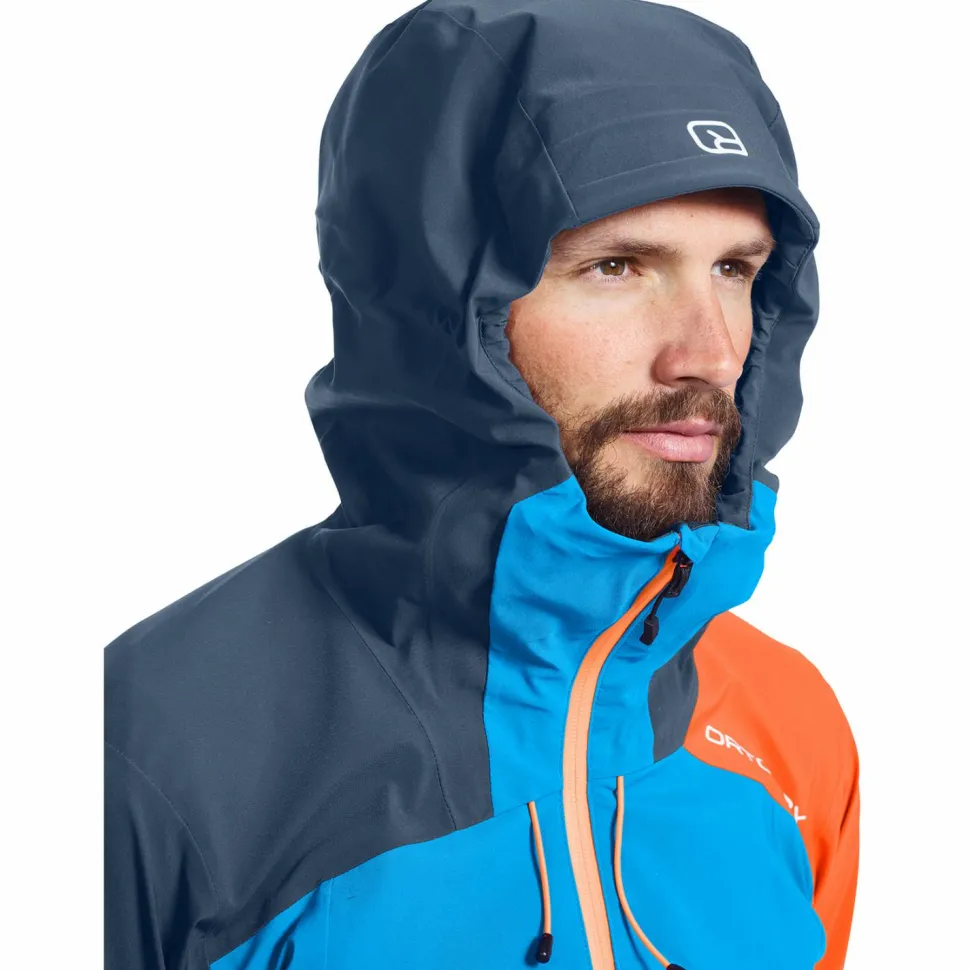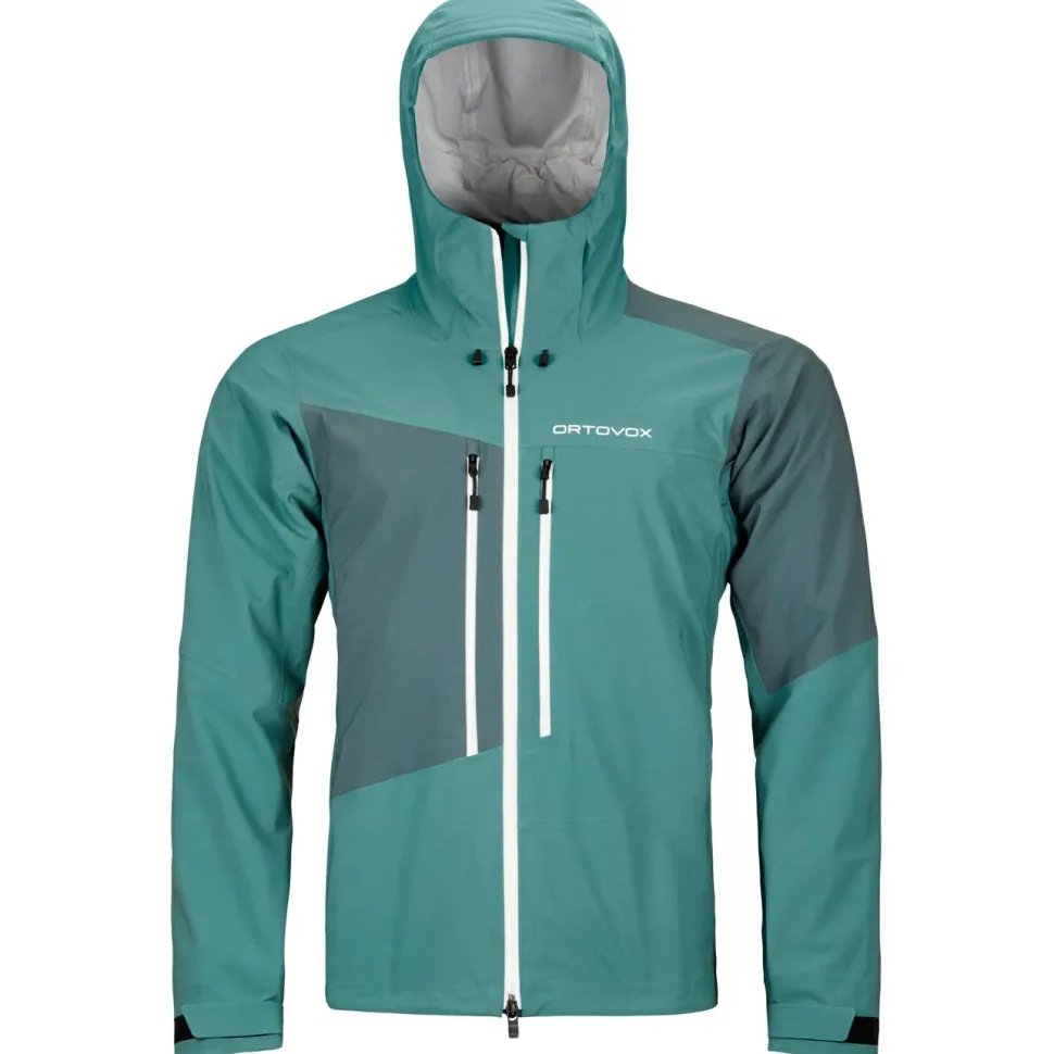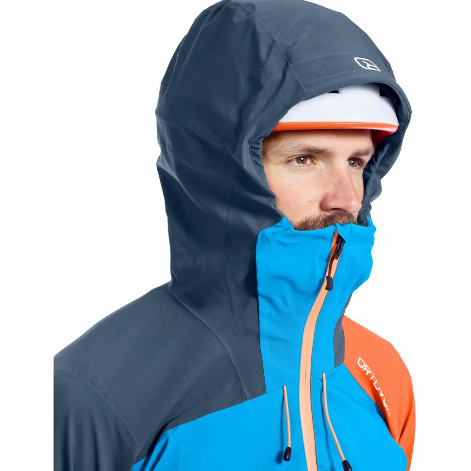 Warum sich die Regenjacke speziell für die oben genannten Einsatzbereiche eignet? Weil sich Ortovox bei der Westalpen 3L Jacket etwas ganz besonderes hat einfallen lassen. Der spezielle High Reach Fit mit länger geschnittenen Ärmeln und langem Rumpf ermöglicht einfache Überkopfbewegungen. Zudem halten die weitenregulierbaren Ärmel- und Saumabschlüsse Wind, Schnee und Regen draußen. Besonderen Schutz bietet darüber hinaus die helmkompatible Kapuze, die zweifach regulierbar und mit einem hoch geschnittenen Kragen ausgestattet ist.