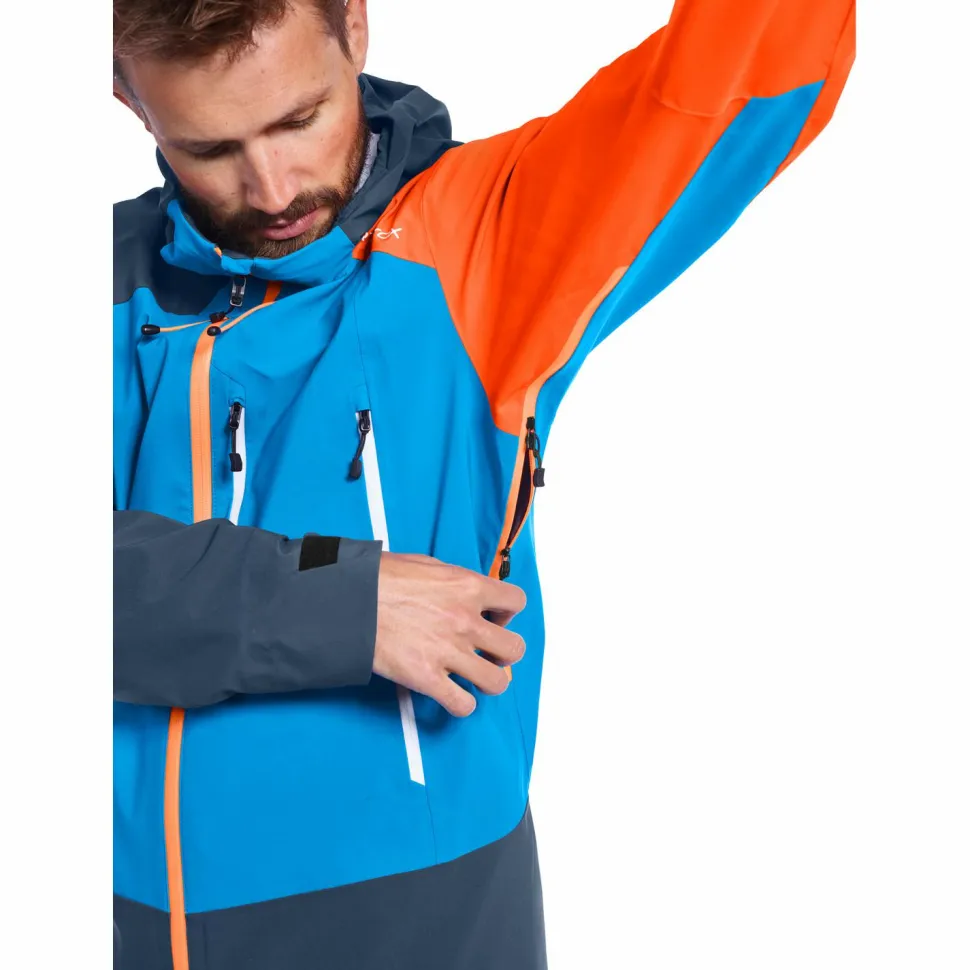 Um im hochalpinen Gelände zurechtzukommen, benötigst Du Kleidung, bei der jedes kleinste Detail durchdacht ist – wie bei der Westalpen 3L Jacket. Hier wird KOMFORT großgeschrieben. Bist Du beispielsweise bei einem harten Anstieg am Berg und sehnst Dich nach nichts anderem als einem Temperaturausgleich, dann kannst Du ganz einfach die Unterarm-Reißverschlüsse öffnen. Auch der durchgehende Zwei-Wege-Frontreißverschluss lässt sich einfach bedienen – selbst mit Klettergurt. Während die Brusttasche Platz für Dein Smartphone oder GPS-Gerät bietet, sind die beiden geräumigen Fronttaschen rucksack-optimiert und verstauen Karte, Topo oder andere Gegenstände.